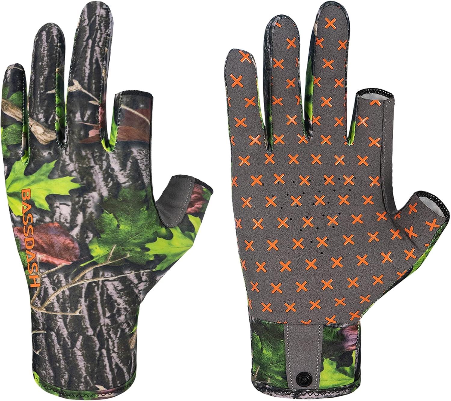 BASSDASH Green Leaf Camo Hunting Fishing -Hunting Shirts(M) & Gloves(M) Bundle