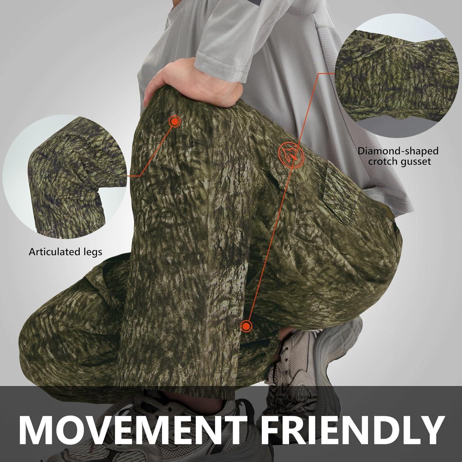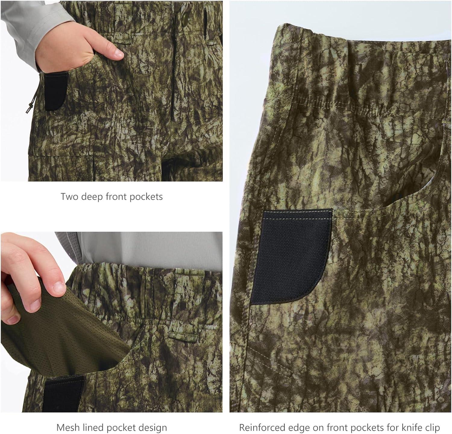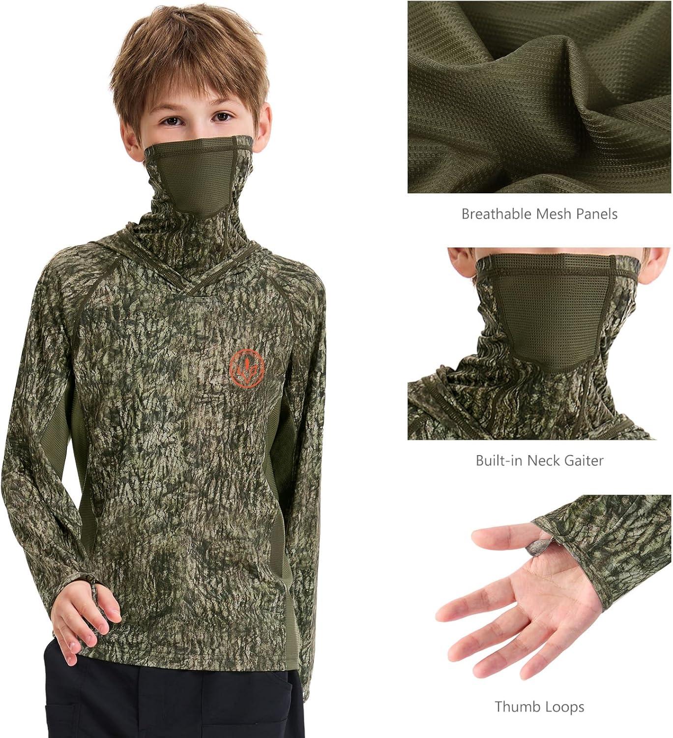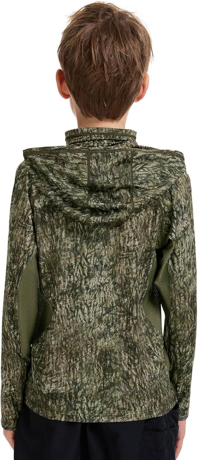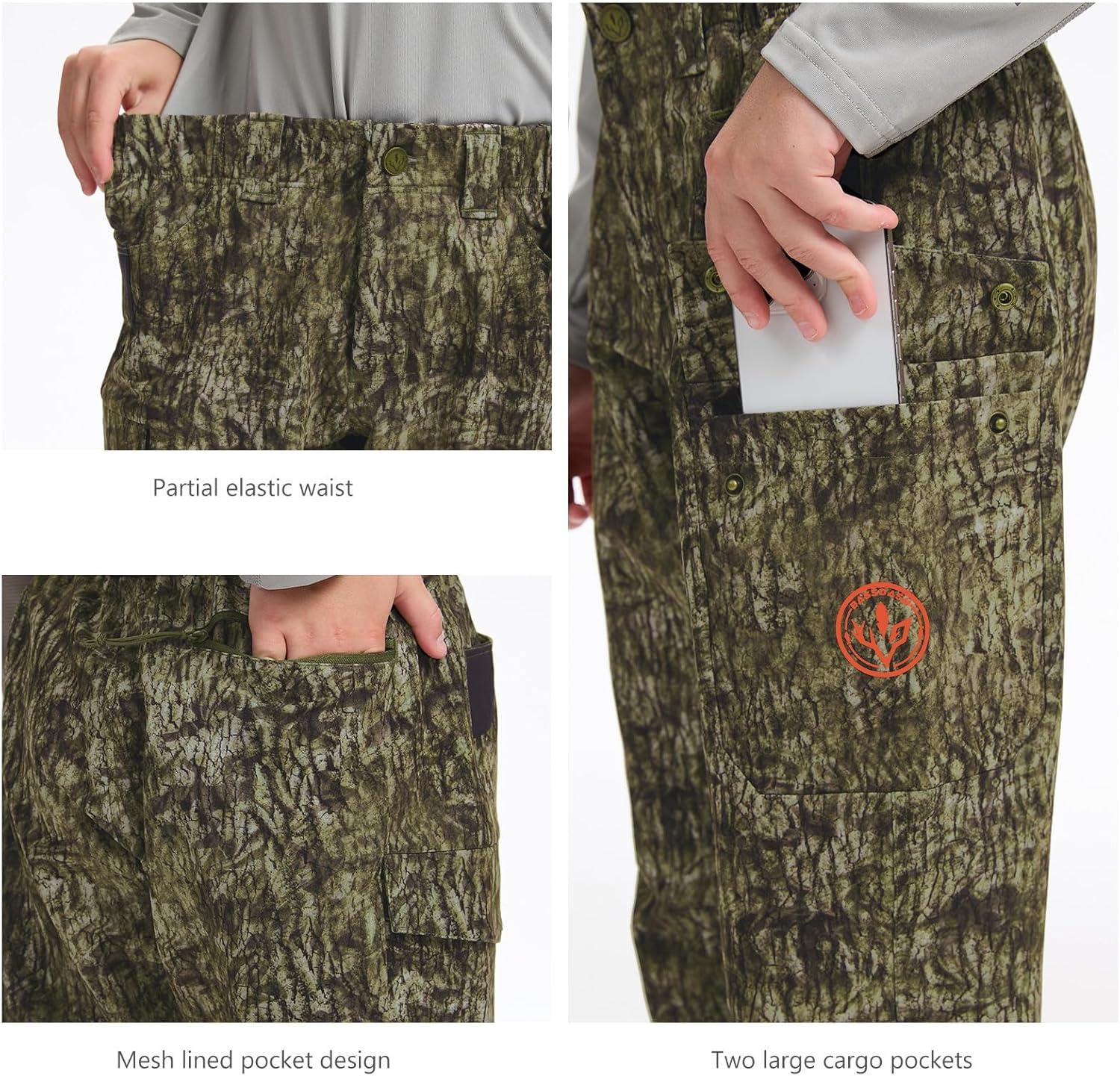 BASSDASH Invis Kid’s Youth Stretch Hunting Pants Water Resistant Breathable Camo Cargo Fishing Pant & Youth UPF 50+ Camo Hunting Hoodie Shirt with Neck Gaiter