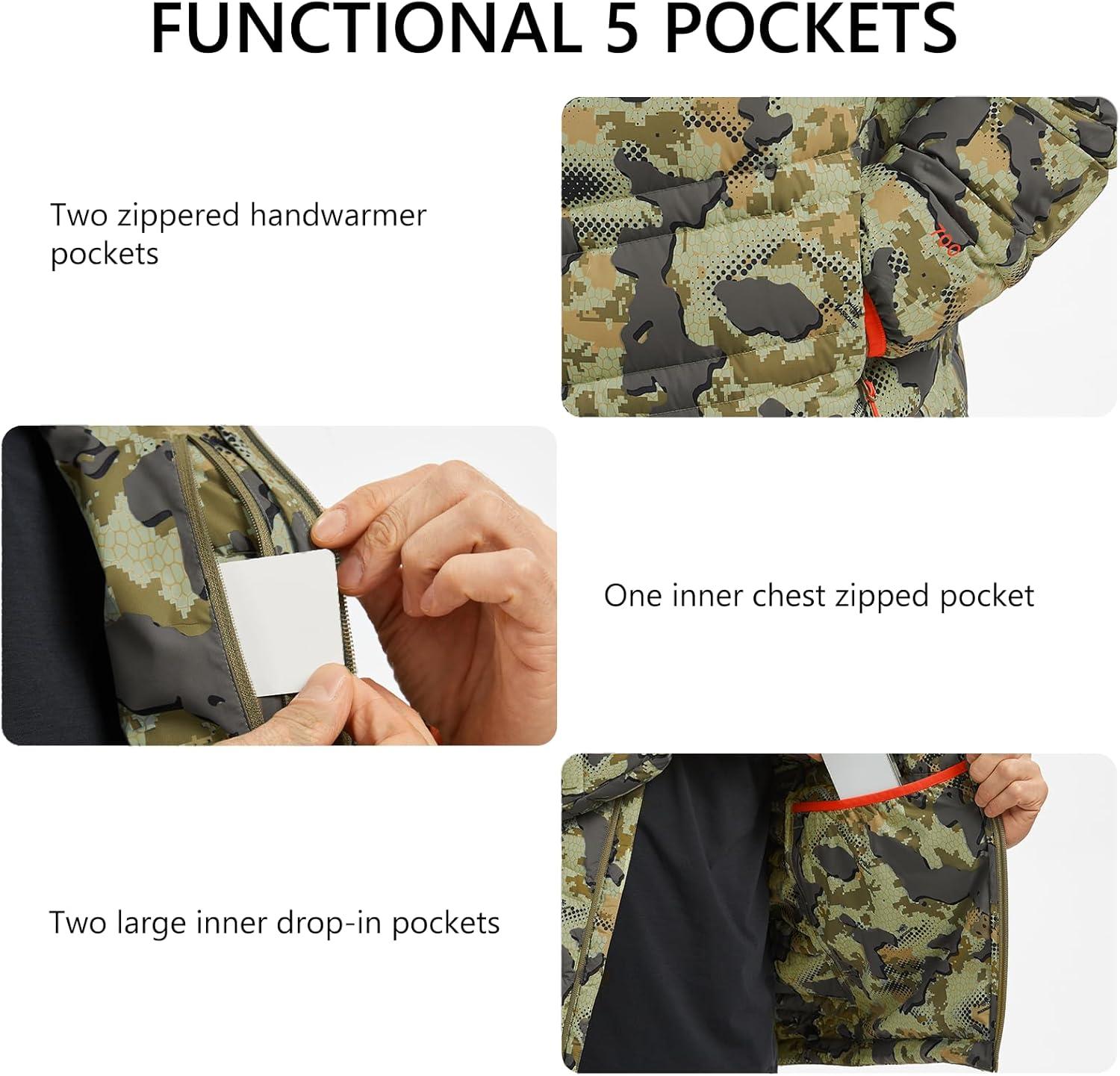 BASSDASH Men’s Puffy Down Jacket 700FP Packable Water Resistant Puffer Insulated Warm Coat for Hunting Fishing Hiking FS49M(Open Terrain)
