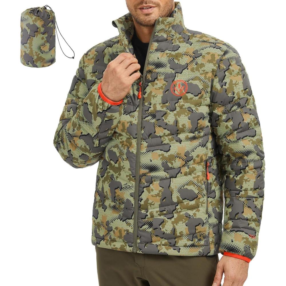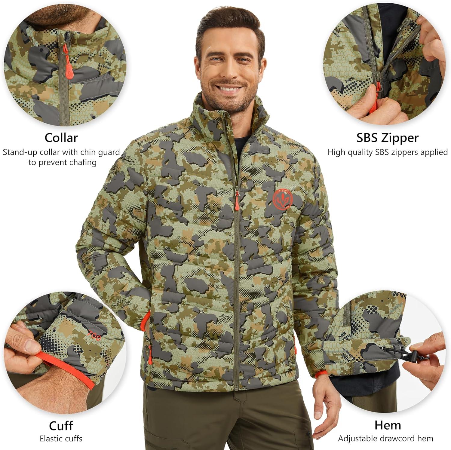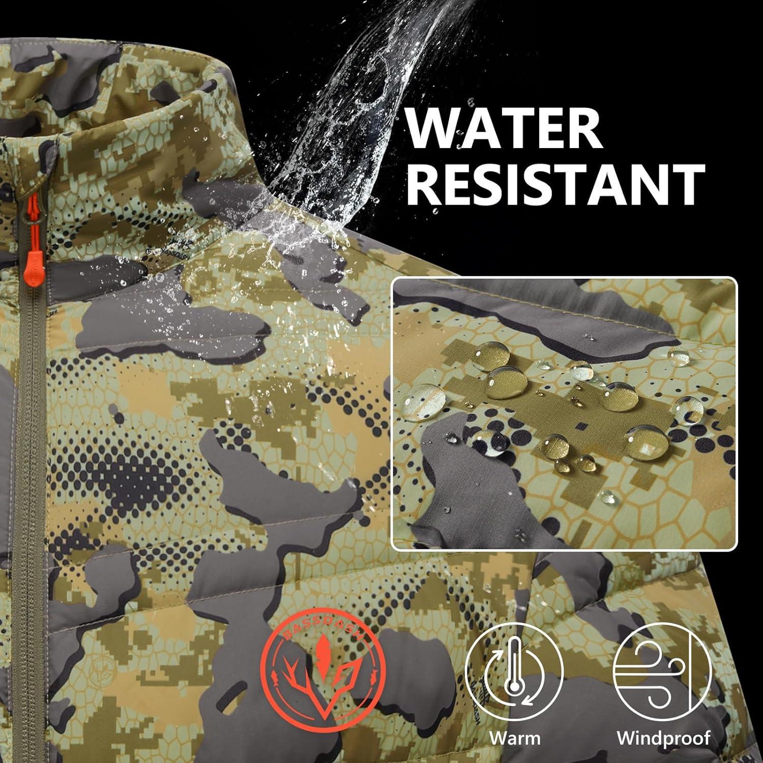BASSDASH Men’s Puffy Down Jacket 700FP Packable Water Resistant Puffer Insulated Warm Coat for Hunting Fishing Hiking FS49M(Grunge Camo)