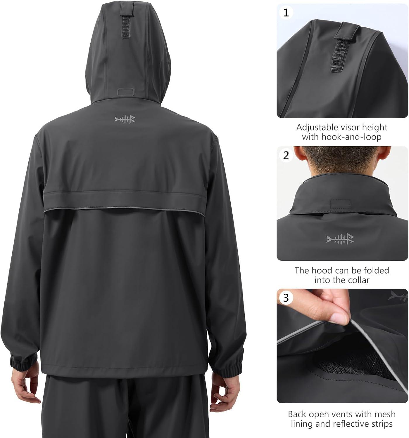 BASSDASH Men’s Rain Suit Waterproof Breathable Durable Fishing Rain Gear Packable for Hunting, Hiking, Running, Cycling FW12(Dark Grey)