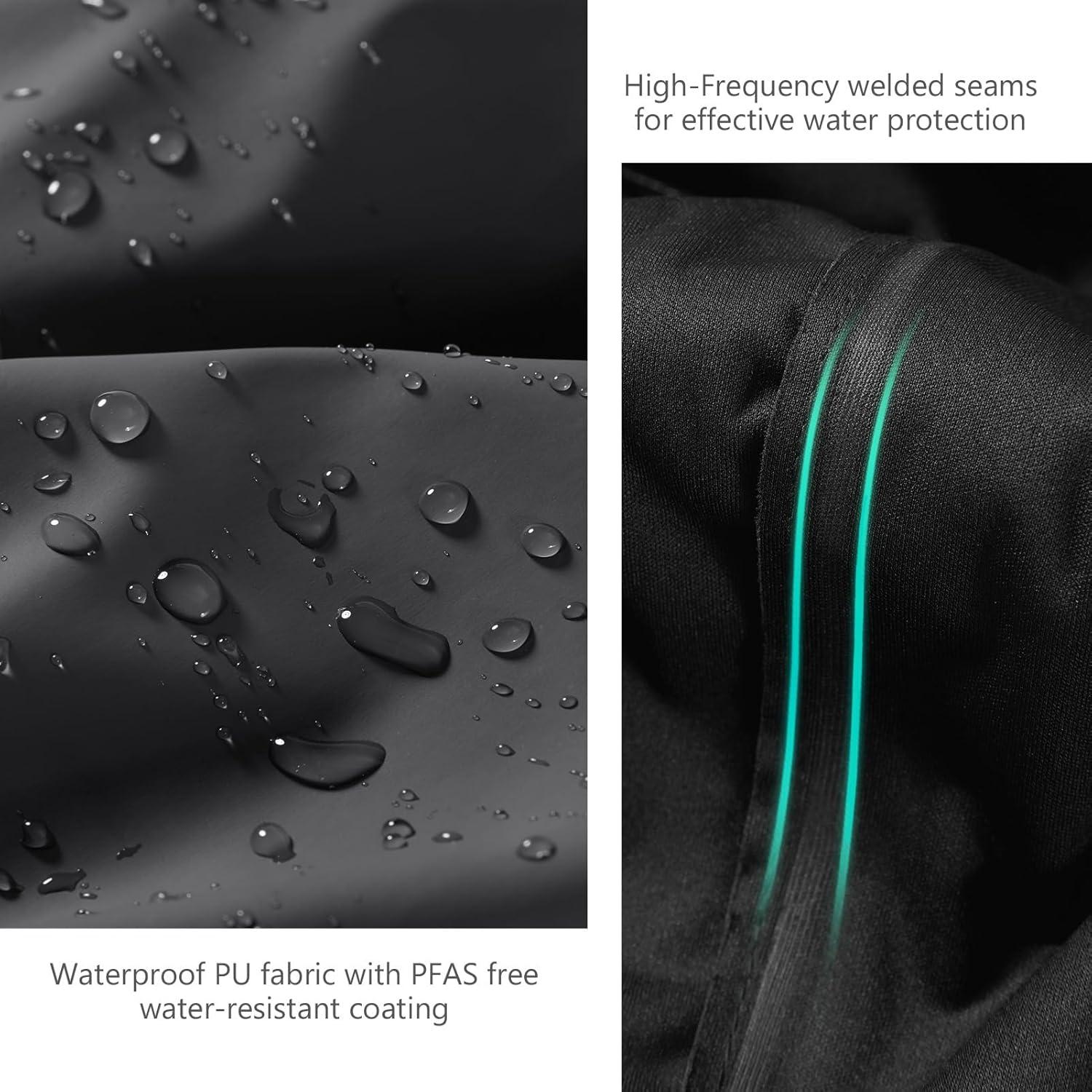 This durable rain suit features a 100% PU outer shell and 100% polyester inner layer with high-frequency welded seams, it delivers reliable waterproof protection up to 5,000mm H2O and windproof. Breathable mesh lining and ventilation openings enhance airflow and comfort, while reflective strips and logos enhance visibility for safety in low-light conditions. The jacket comes with a widened brimmed, adjustable hood, SBS water-resistant front zipper, elastic cuffs and a drawstring hem; the pants include an elastic waistband with an internal drawstring and adjustable hook-and-loop leg openings for a snug fit. Equipped with double welt side pockets on both the jacket and the pants. Provided with a storage bag for easy packing and carrying, this rain suit is perfect for outdoor activities such as fishing, hunting, hiking, camping, and yard work.
