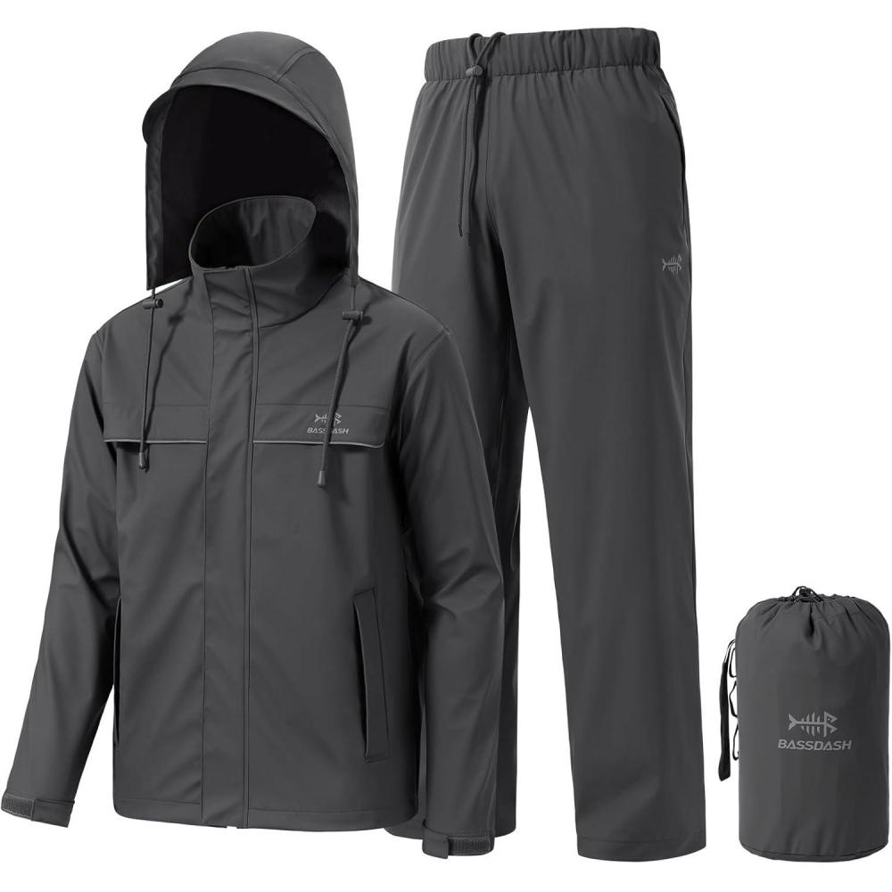imageBASSDASH Mens Rain Suit Waterproof Breathable Durable Fishing Rain Gear Packable for Hunting Hiking Running Cycling FW12Dark Grey
