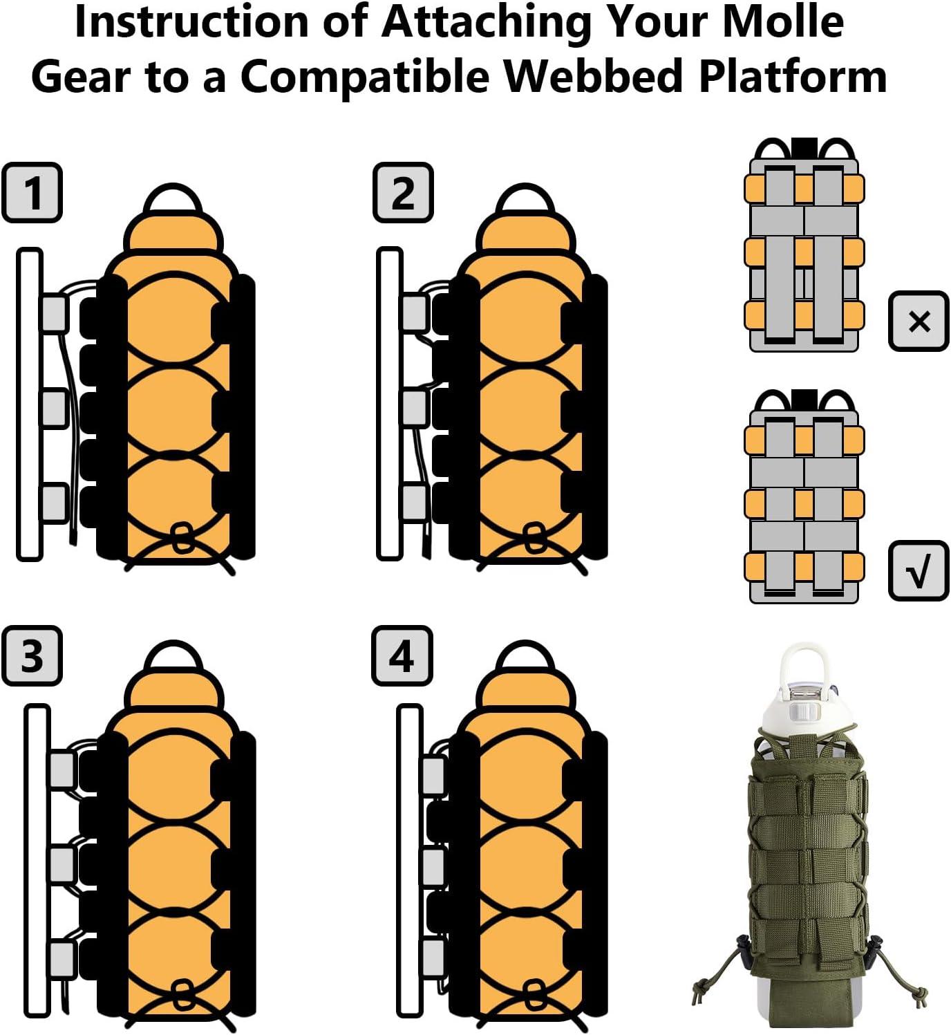 MOLLE-Compatible & Lightweight: With built-in dual straps, the bottle pouch can be attached to vests, packs, 2” belts, or any gear with MOLLE webbing; Weighs only 5.0 oz and folds flat when not in use to save valuable pack space