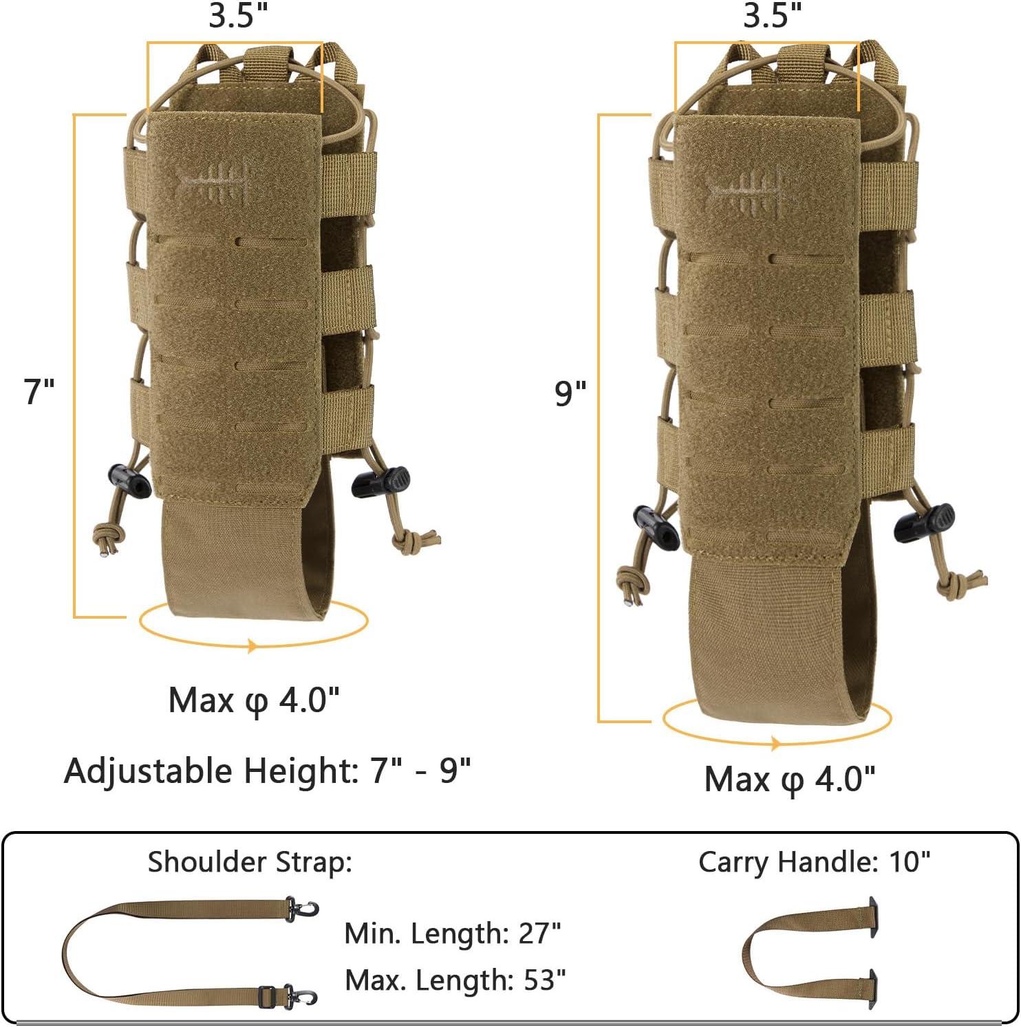 BASSDASH MOLLE Water Bottle Holder Pouch with Shoulder Strap Modular Bag for Fishing Hunting Hiking Travel Outdoor Activities(Coyote)