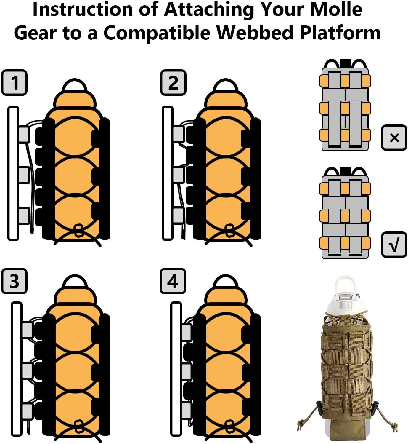 MOLLE-Compatible & Lightweight: With built-in dual straps, the bottle pouch can be attached to vests, packs, 2” belts, or any gear with MOLLE webbing; Weighs only 5.0 oz and folds flat when not in use to save valuable pack space