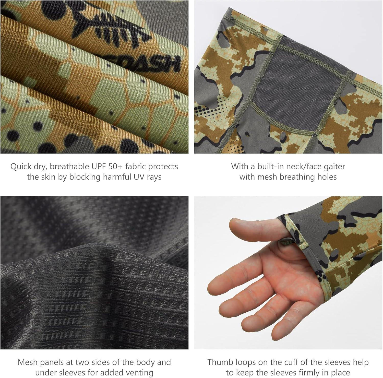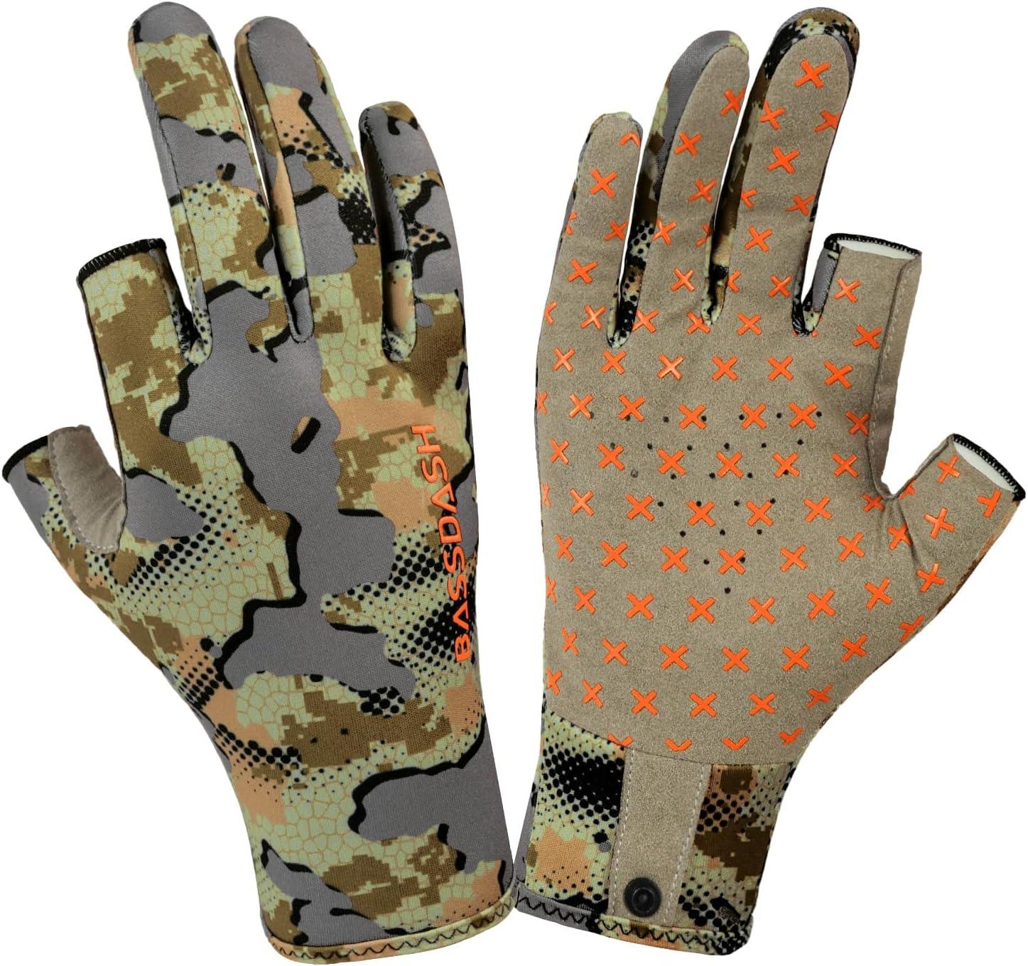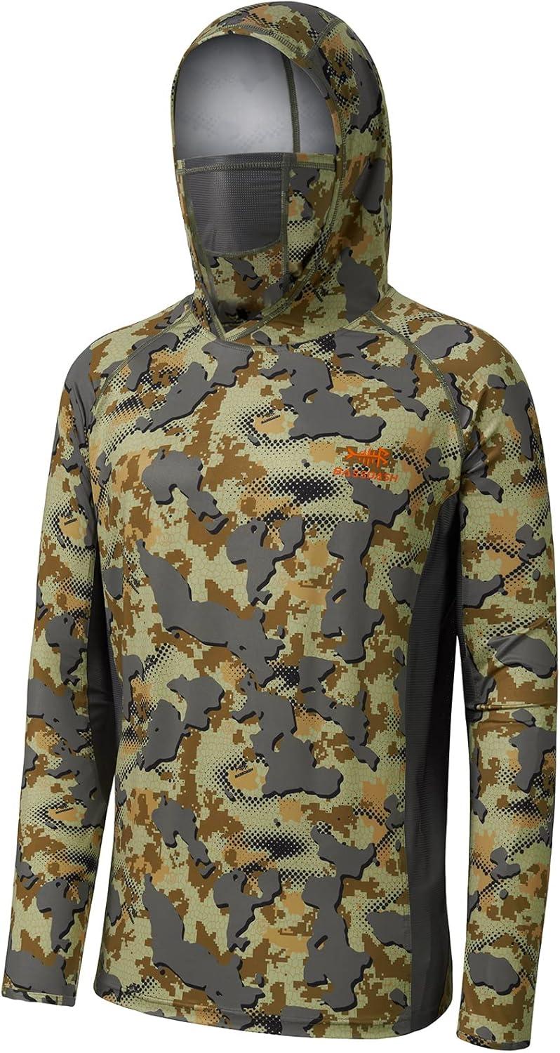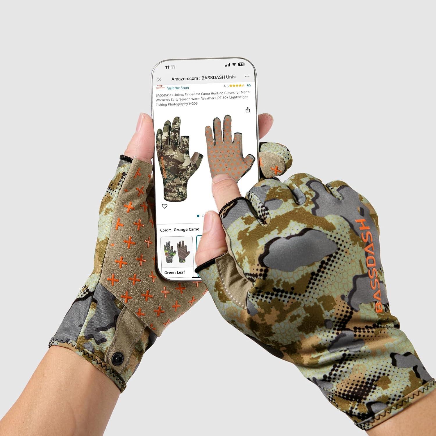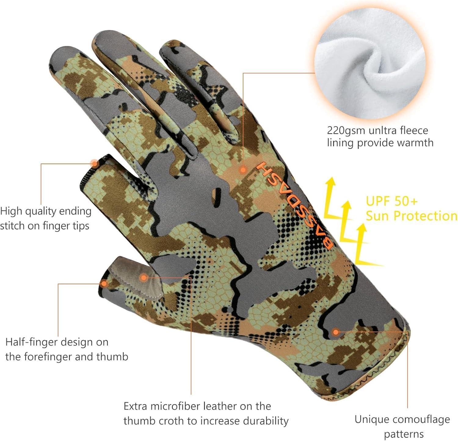 BASSDASH Open Terrain Camo Men's Hunting Shirts(Large) & Fingerless Fleece Liner Camo Hunting Gloves(X-Large) Bundle