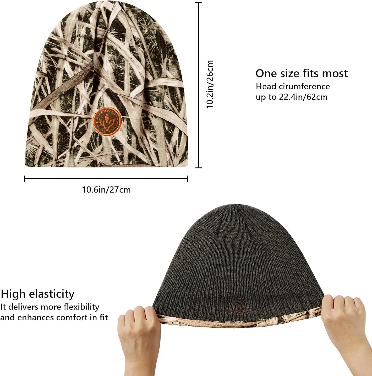 BASSDASH Reversible Windproof Fleece Winter Beanie Hats Thick Warm for Men Women Stretchy Fit Unisex Cuffed Knit Hat(Army Green/Highland)