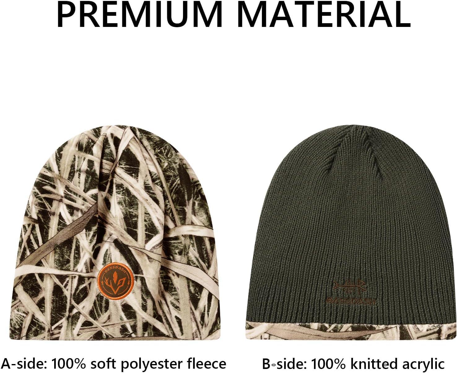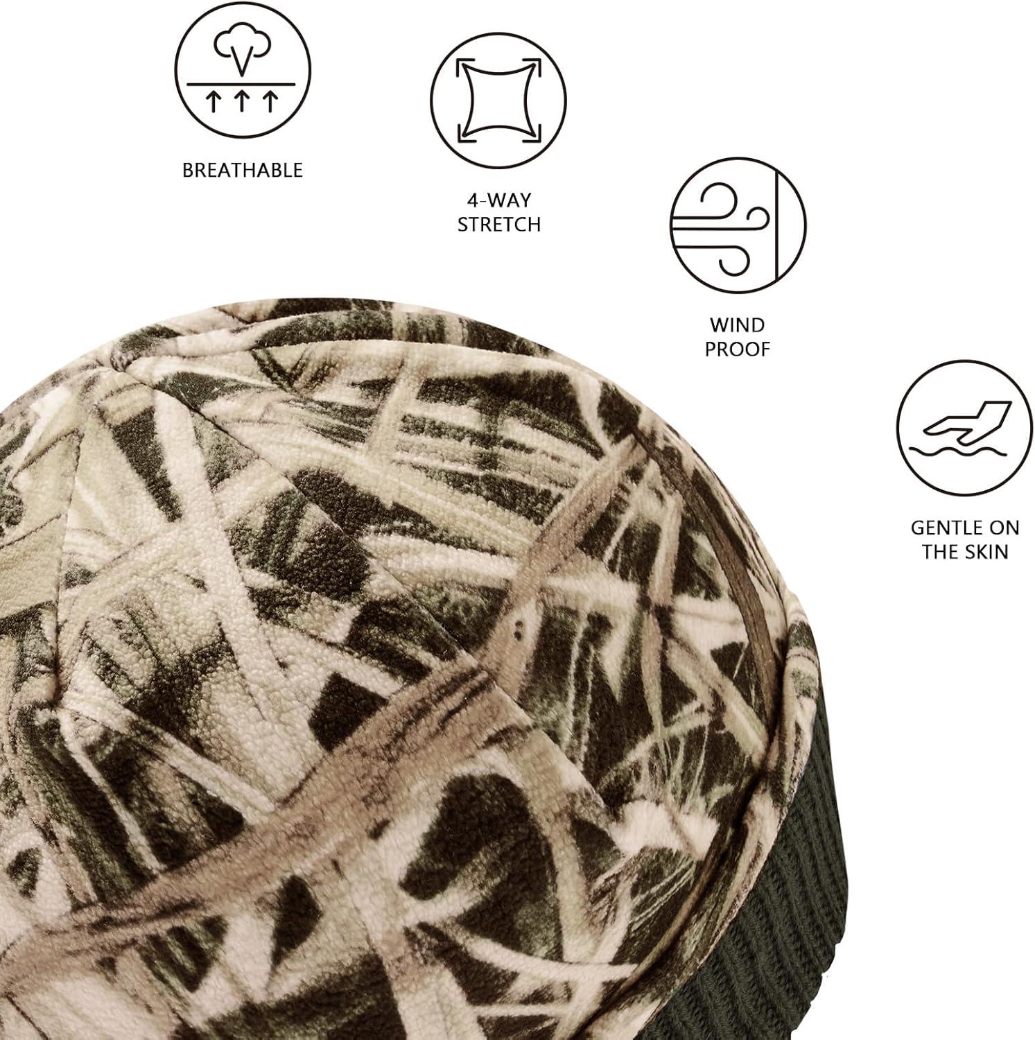 This reversible beanie features a soft acrylic solid side and polyester fleece camo side, offering warmth without bulk. With Bassdash's patented camo technology, it blends seamlessly into various environments, ideal for winter hunts and outdoor activities.