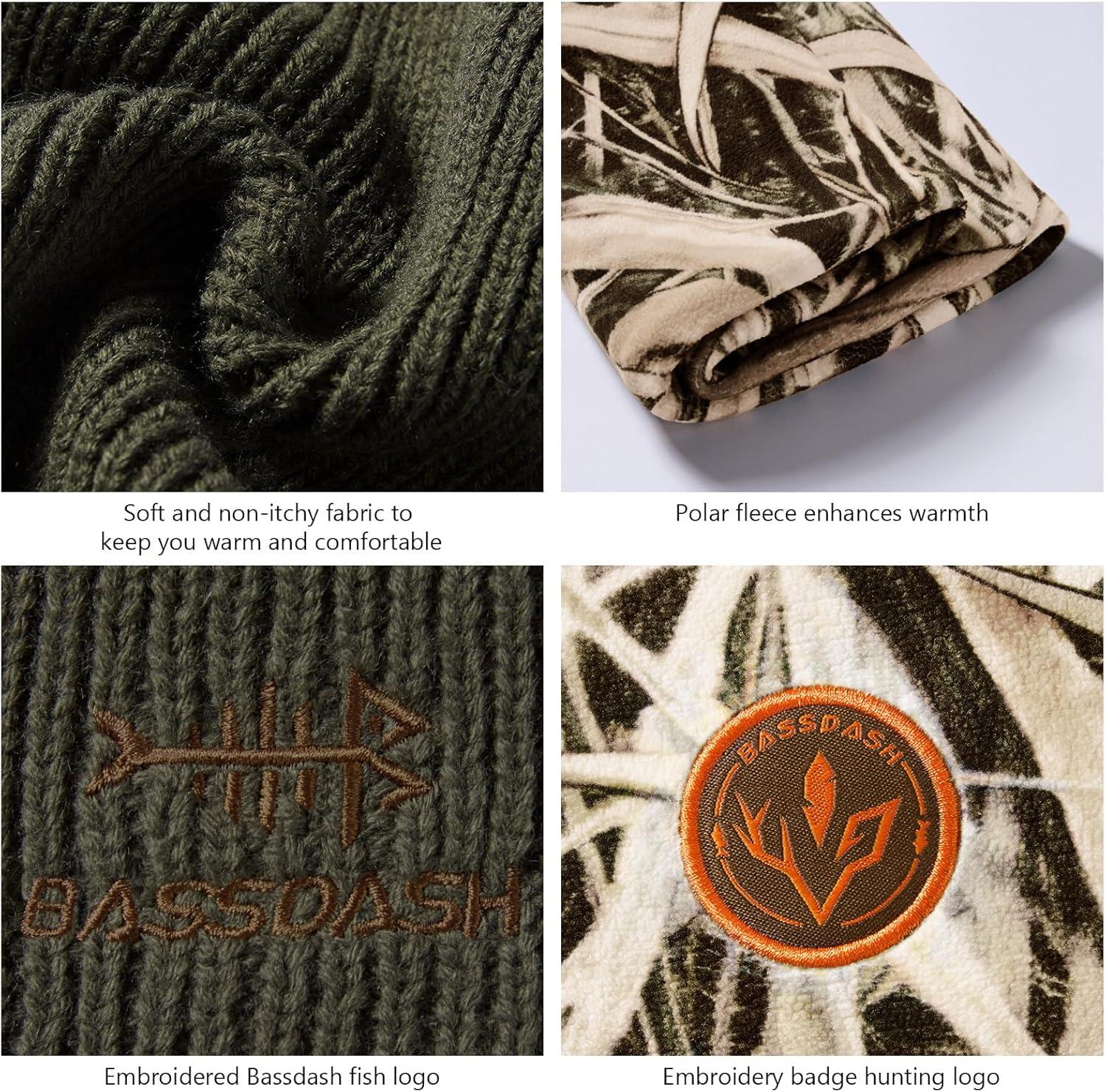 BASSDASH Reversible Windproof Fleece Winter Beanie Hats Thick Warm for Men Women Stretchy Fit Unisex Cuffed Knit Hat(Army Green/Dried Reeds)