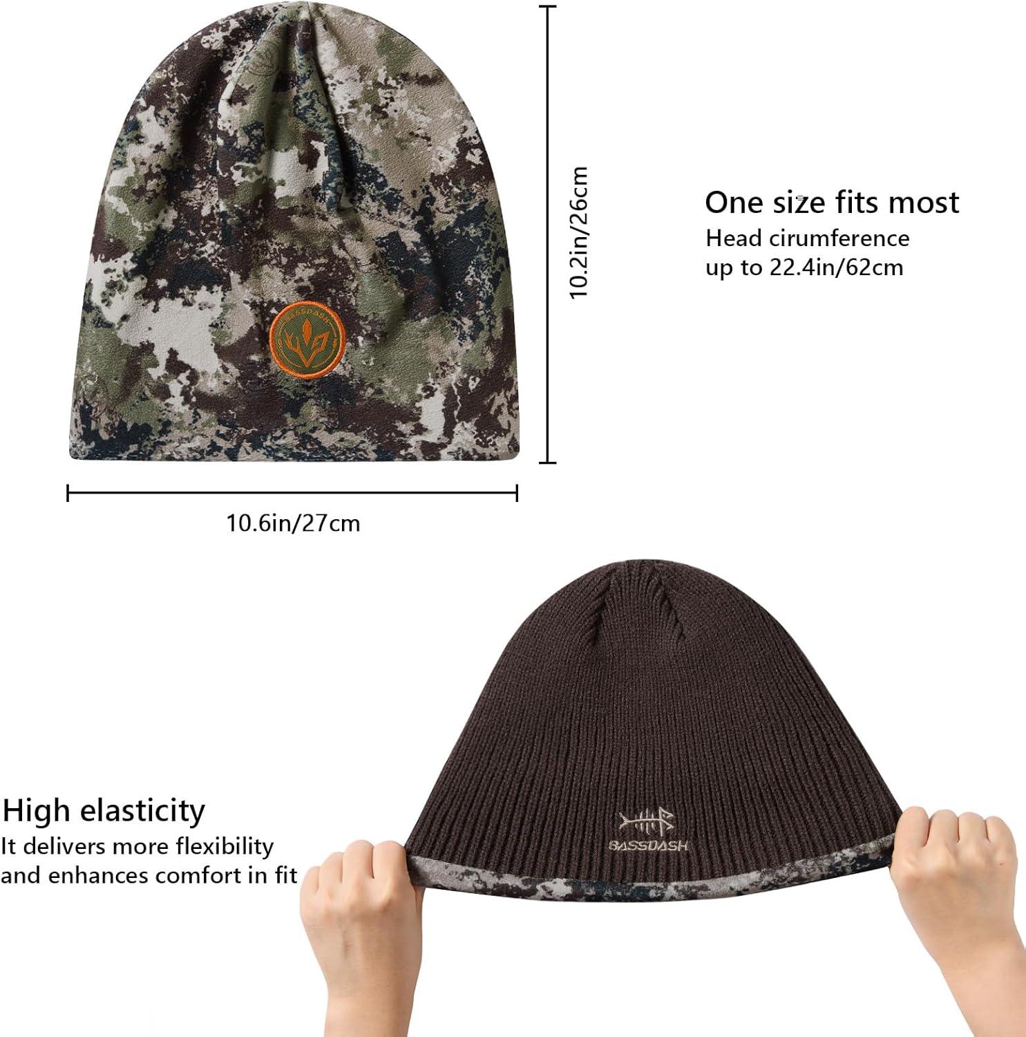 This reversible beanie features a soft acrylic solid side and polyester fleece camo side, offering warmth without bulk. With Bassdash's patented camo technology, it blends seamlessly into various environments, ideal for winter hunts and outdoor activities.