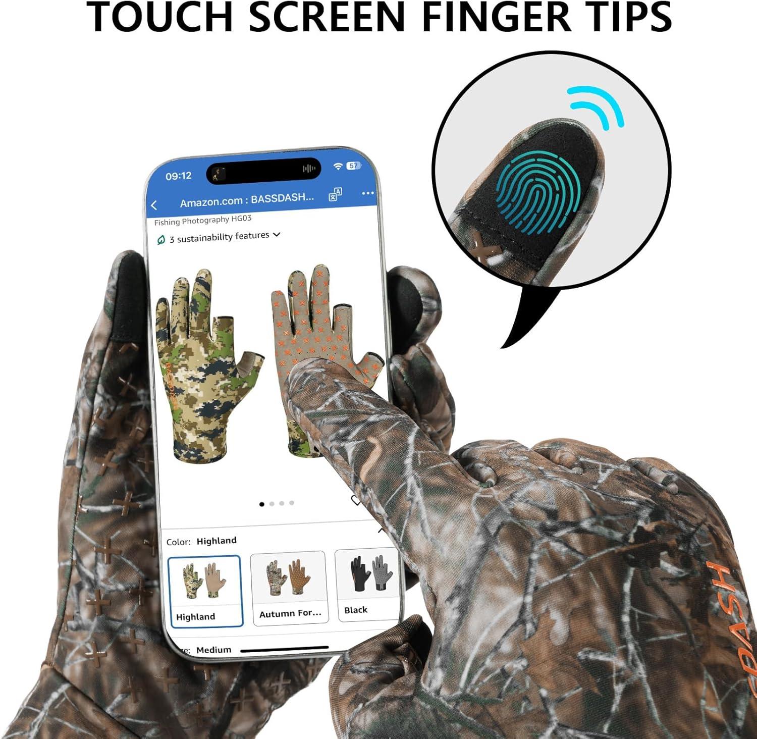 BASSDASH Camo Hunting Gloves Touchscreen Lightweight Glove for Warm Weather Turkey Fishing Outdoor Activities HG08(Mossy Wood)