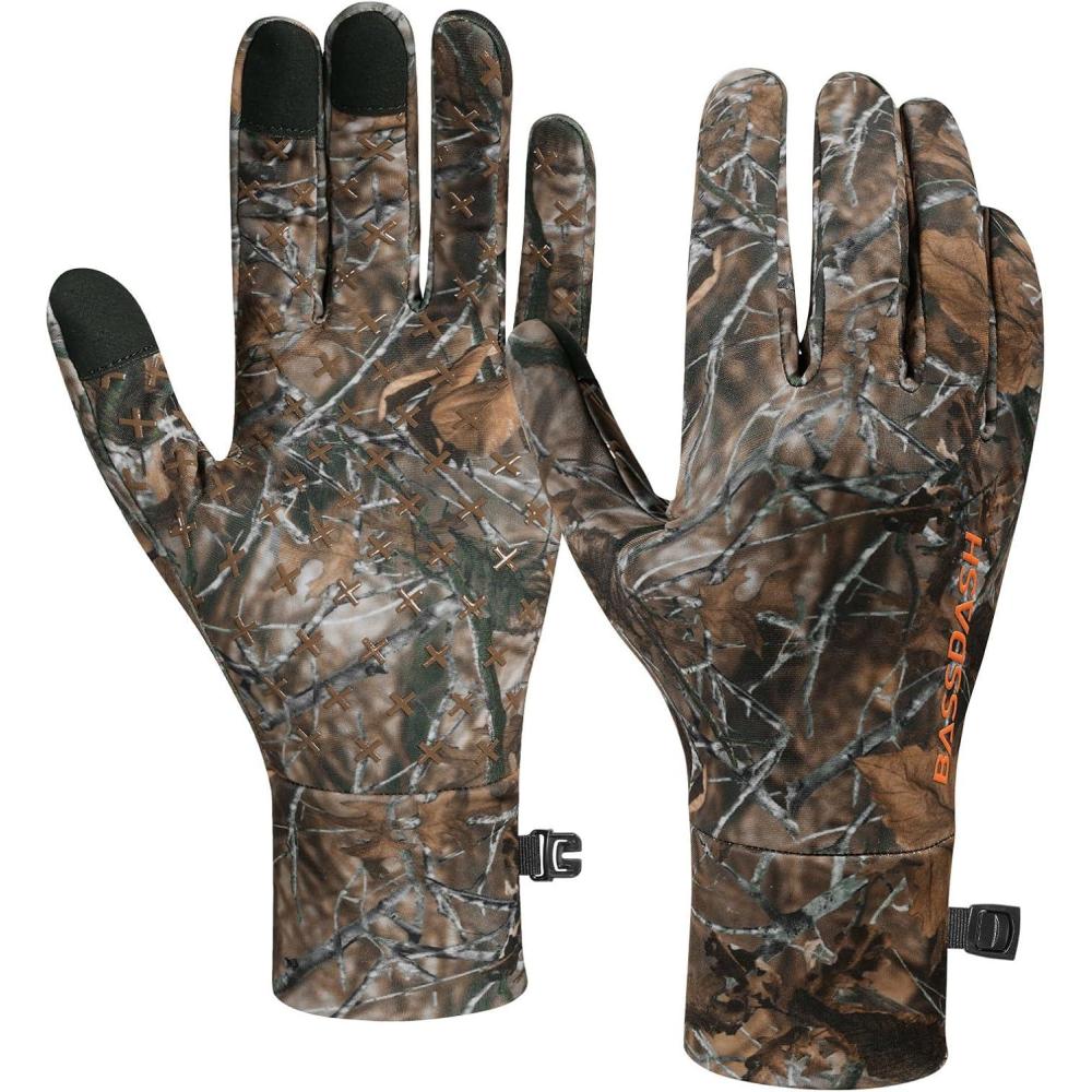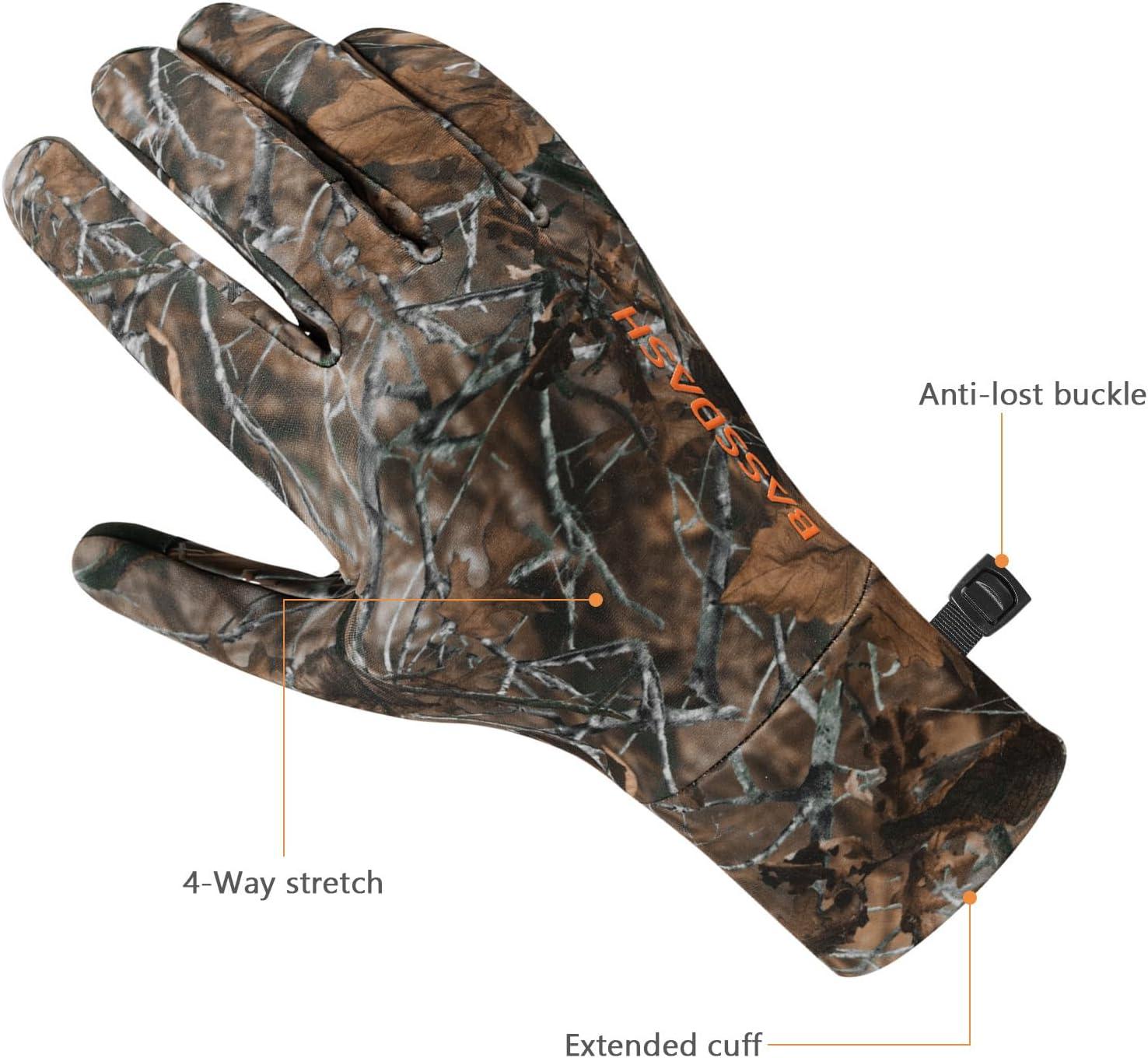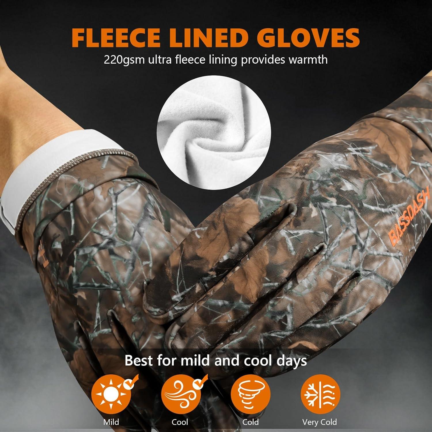 imageBASSDASH Unisex Fleece Liner Lightweight Camo Hunting Gloves Touchscreen Warm Gloves for Fishing Photography HG07Autumn Forest