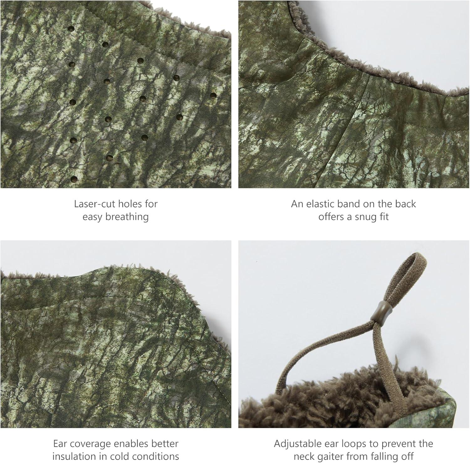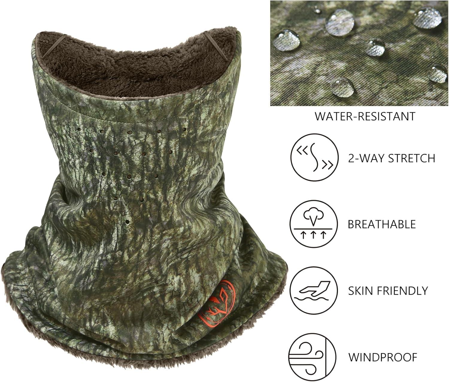 BASSDASH Unisex Winter Neck Gaiter Warmer Insulated Fleece Hunting Face Mask Water Resistant for Fishing Hiking Skiing(Mossy Wood)
