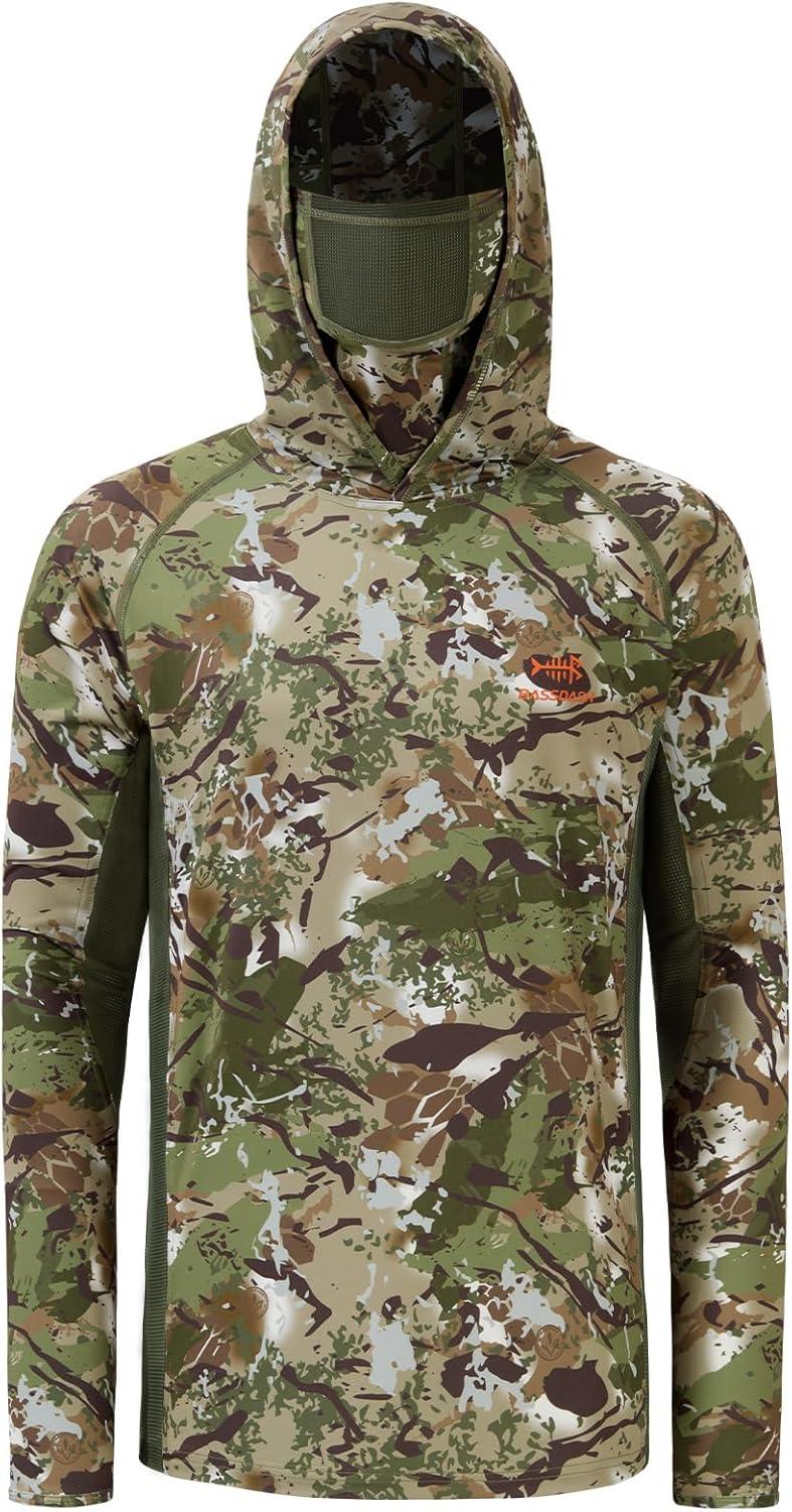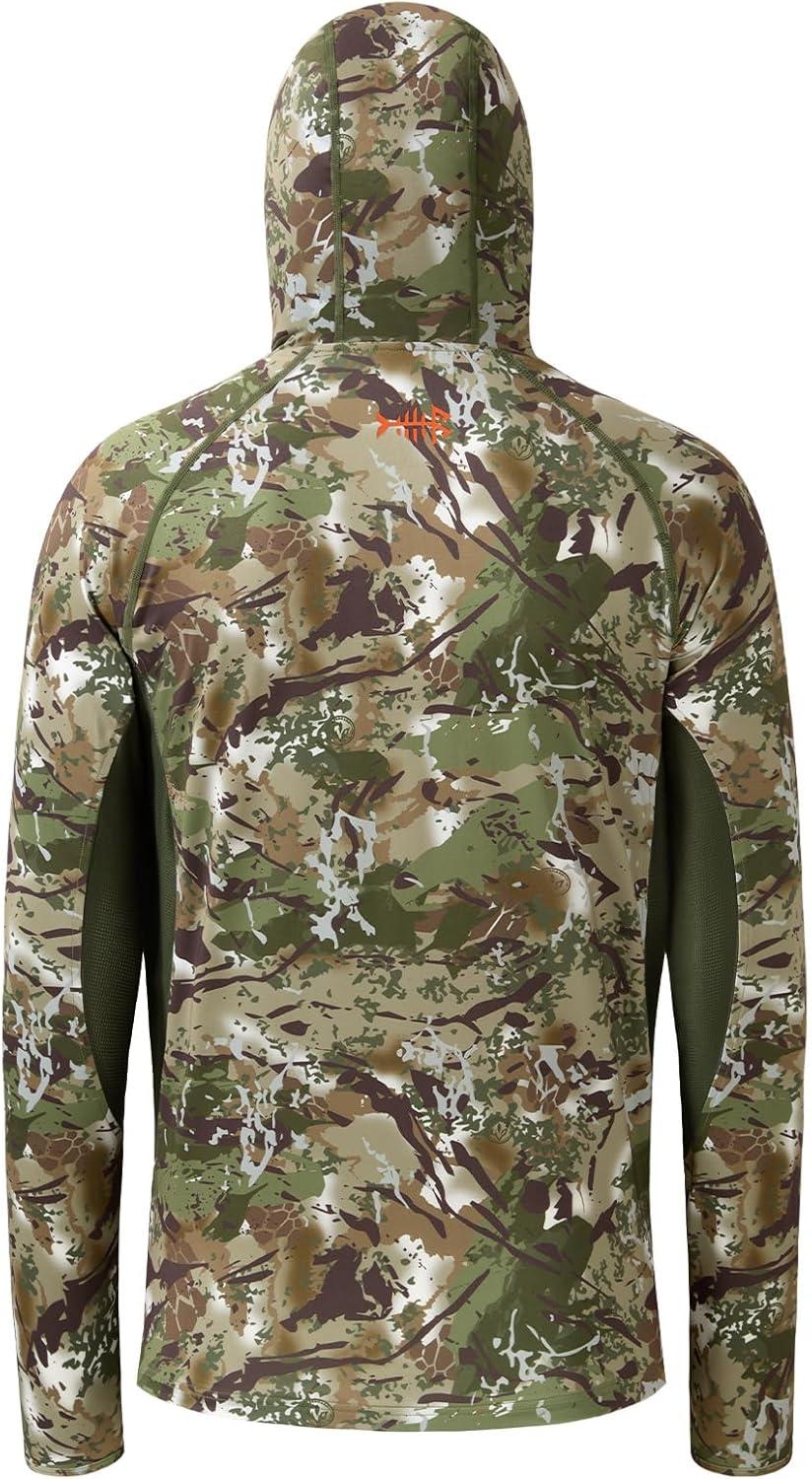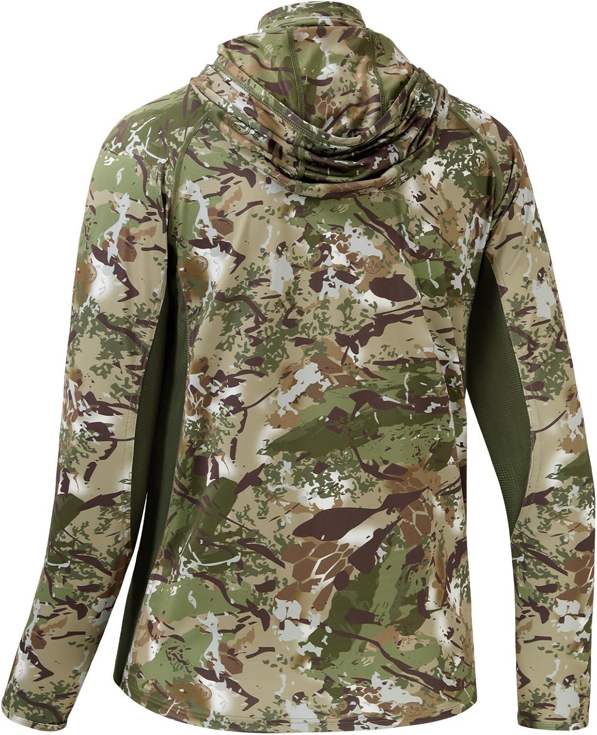 BASSDASH UPF 50+ Men’s Hunting Shirts with Mask Long Sleeve Camo Fishing Hoodie(Timber Transition Camo)