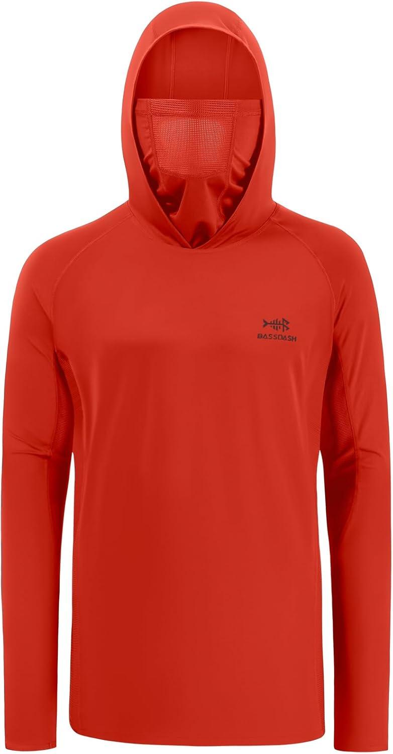 BASSDASH UPF 50+ Men’s Long Sleeve Fishing Shirt with Mask UV Neck Gaiter Hoodie(Coral Red)