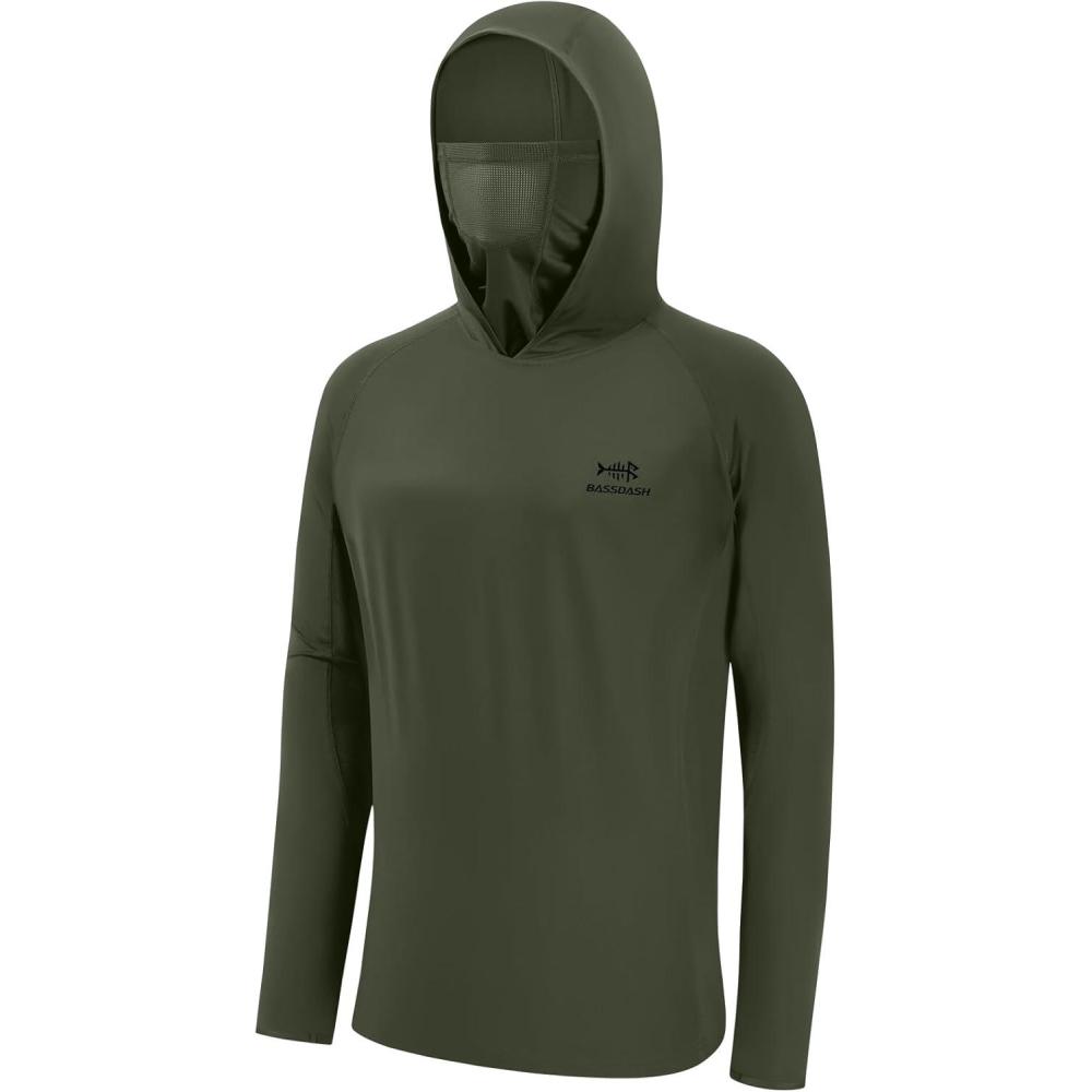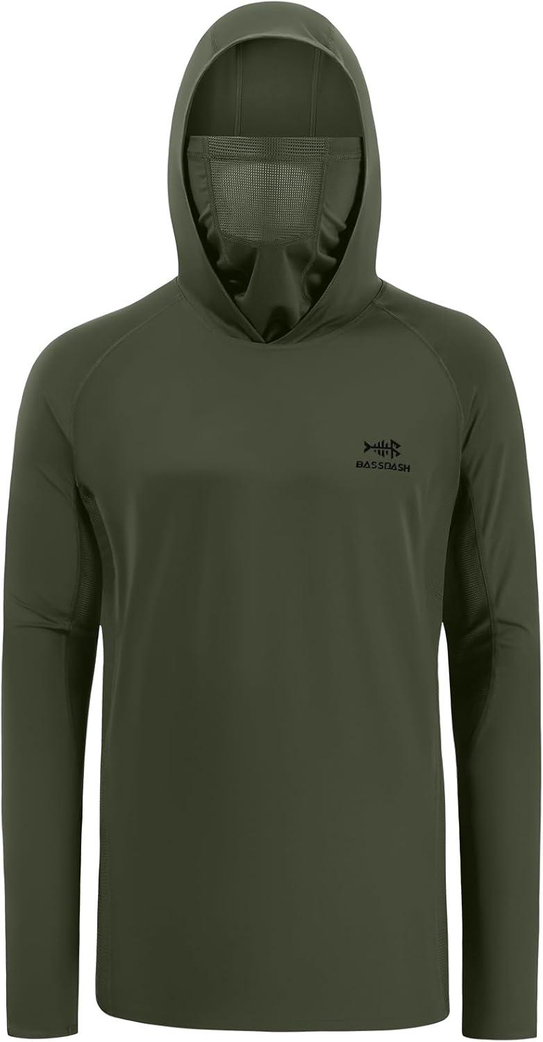 BASSDASH UPF 50+ Men’s Long Sleeve Fishing Shirt with Mask UV Neck Gaiter Hoodie(Olive Green)