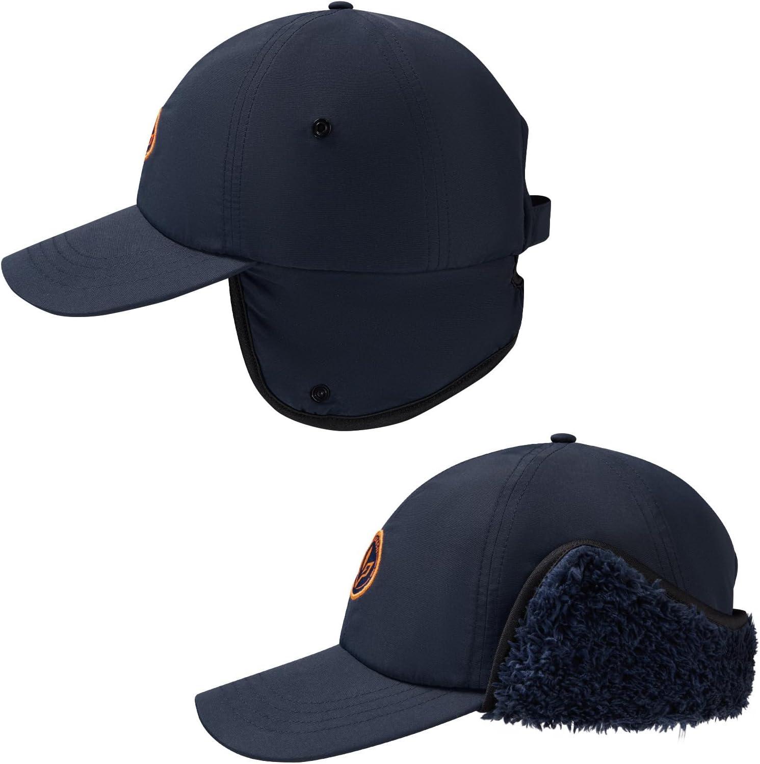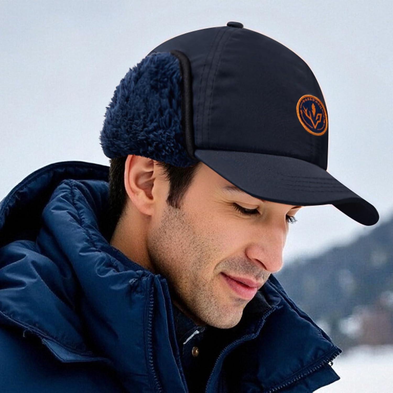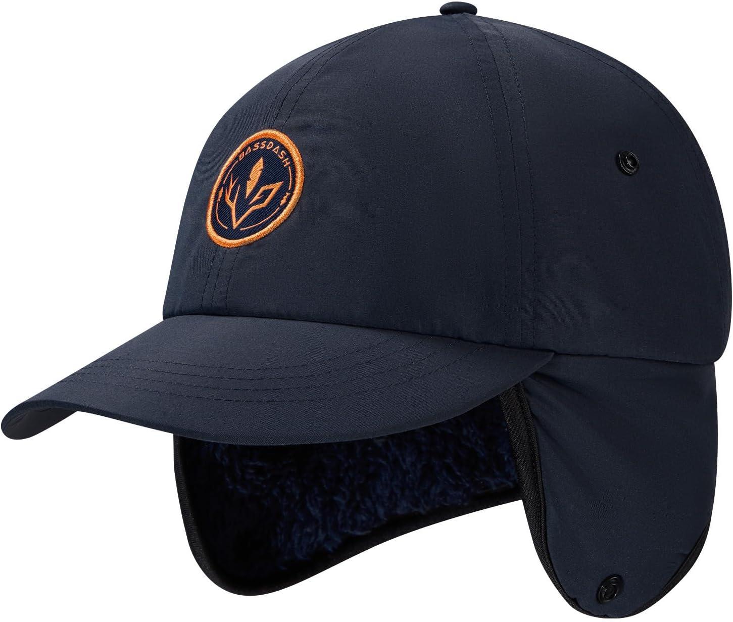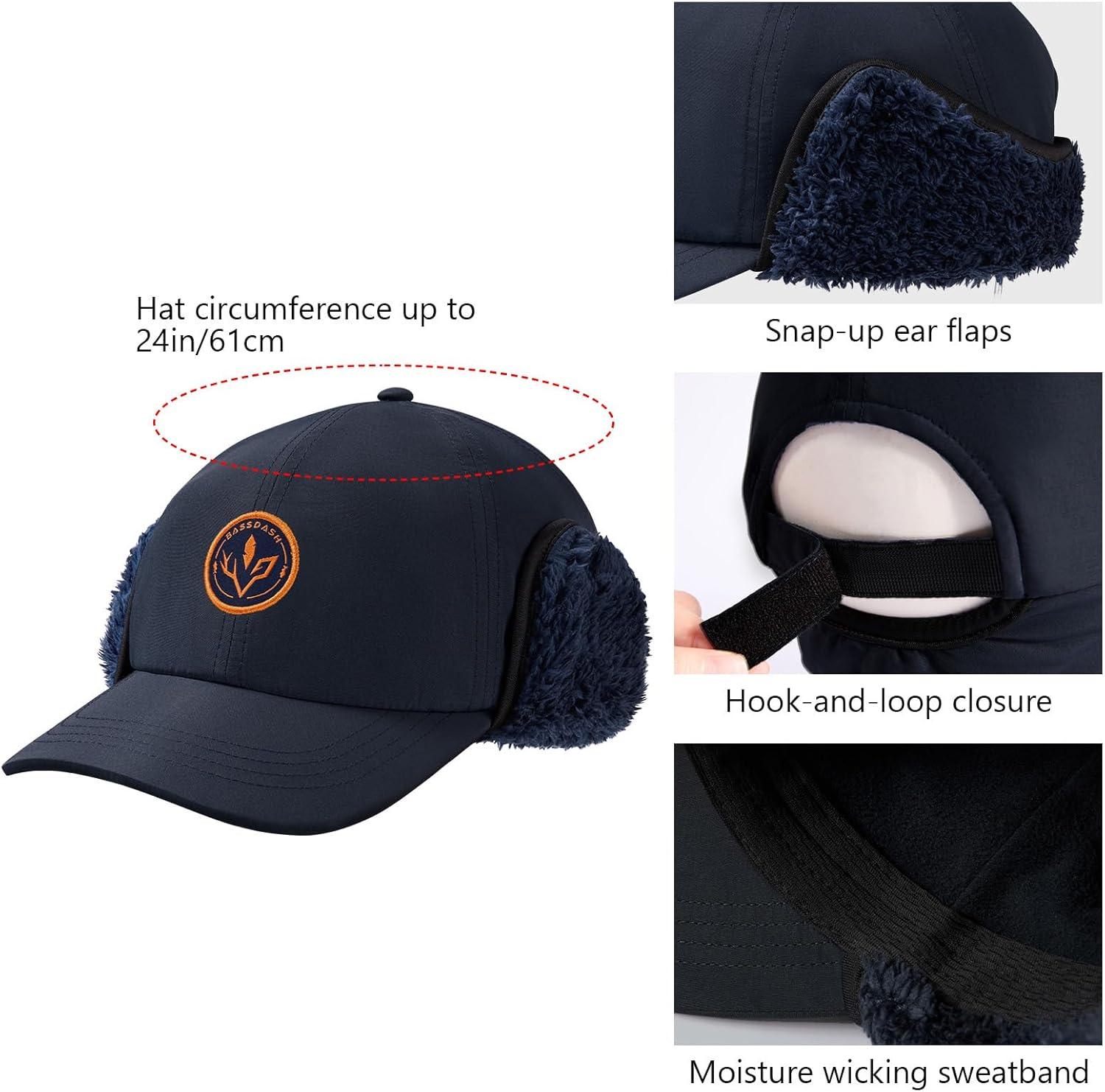 BASSDASH Warm Fleece Lined Hat with Ear Flap Winter Water Resistant Windproof Baseball Sports Cap for Hunting Hiking Fishing(Navy Blue)