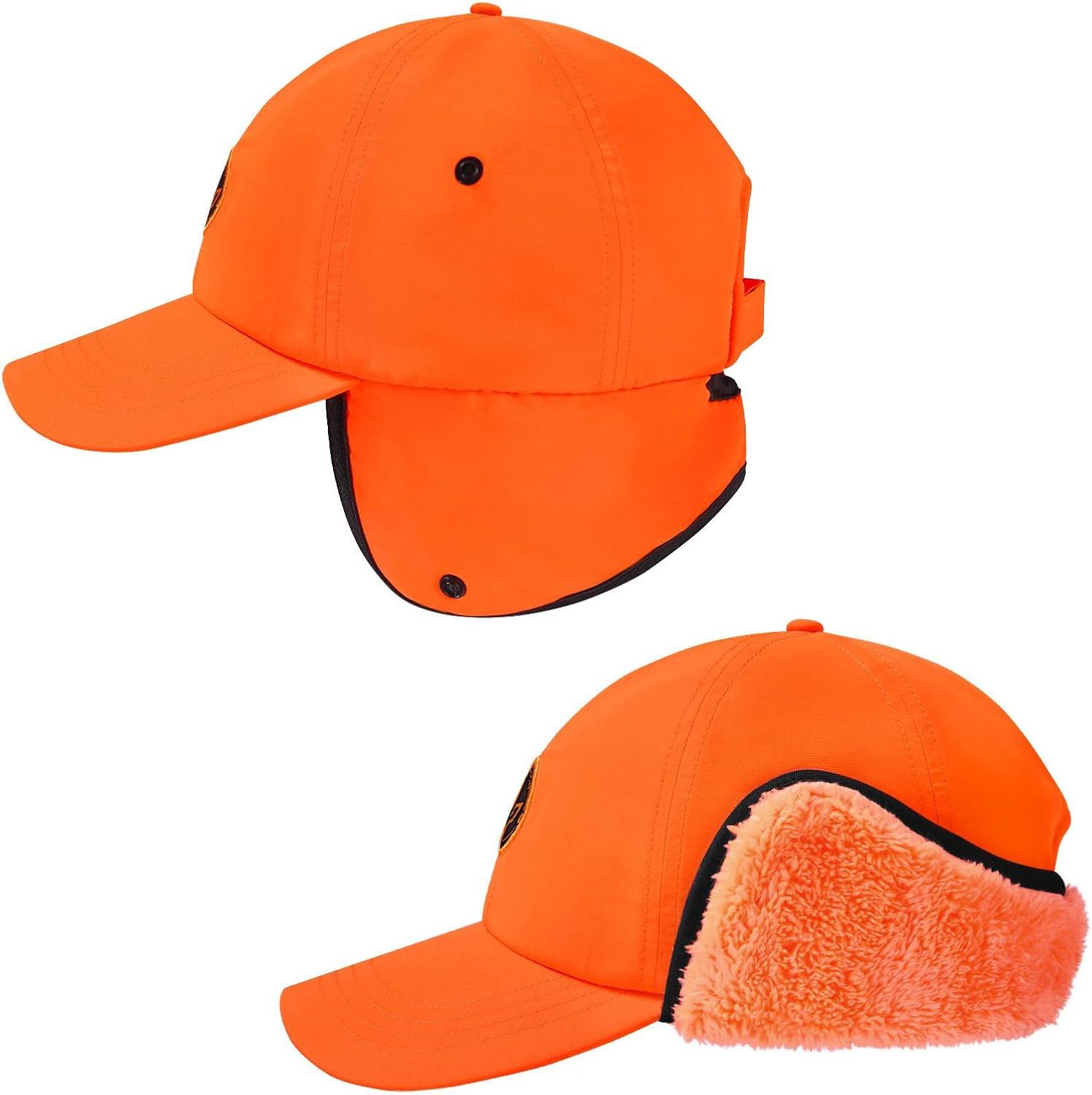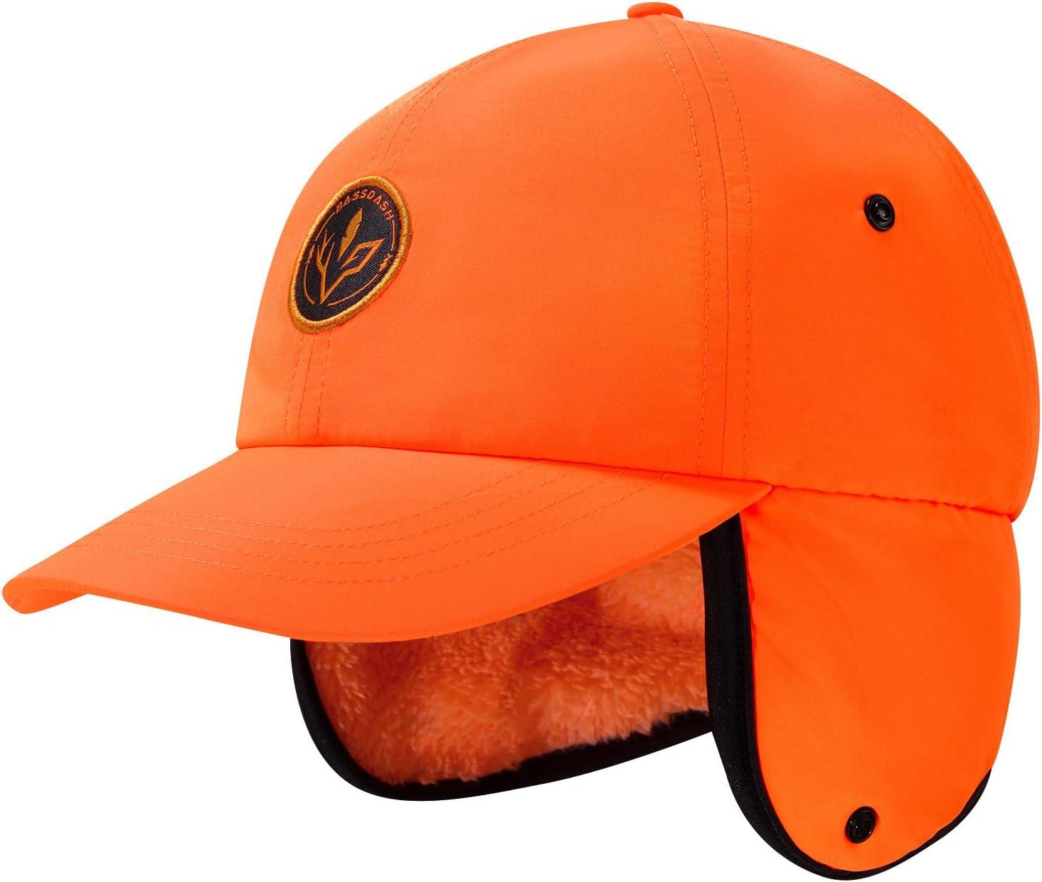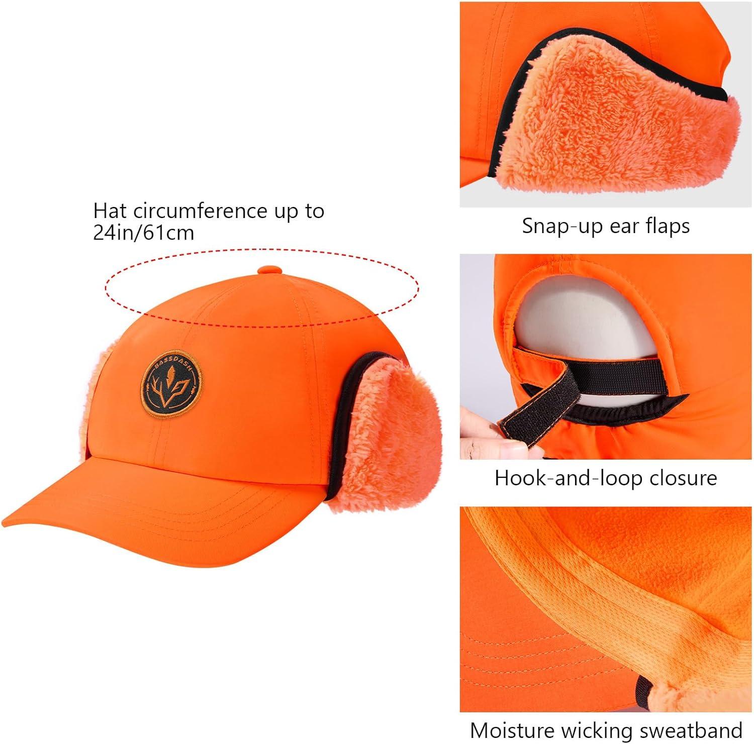BASSDASH Warm Fleece Lined Hat with Ear Flap Winter Water Resistant Windproof Baseball Sports Cap for Hunting Hiking Fishing(Orange)