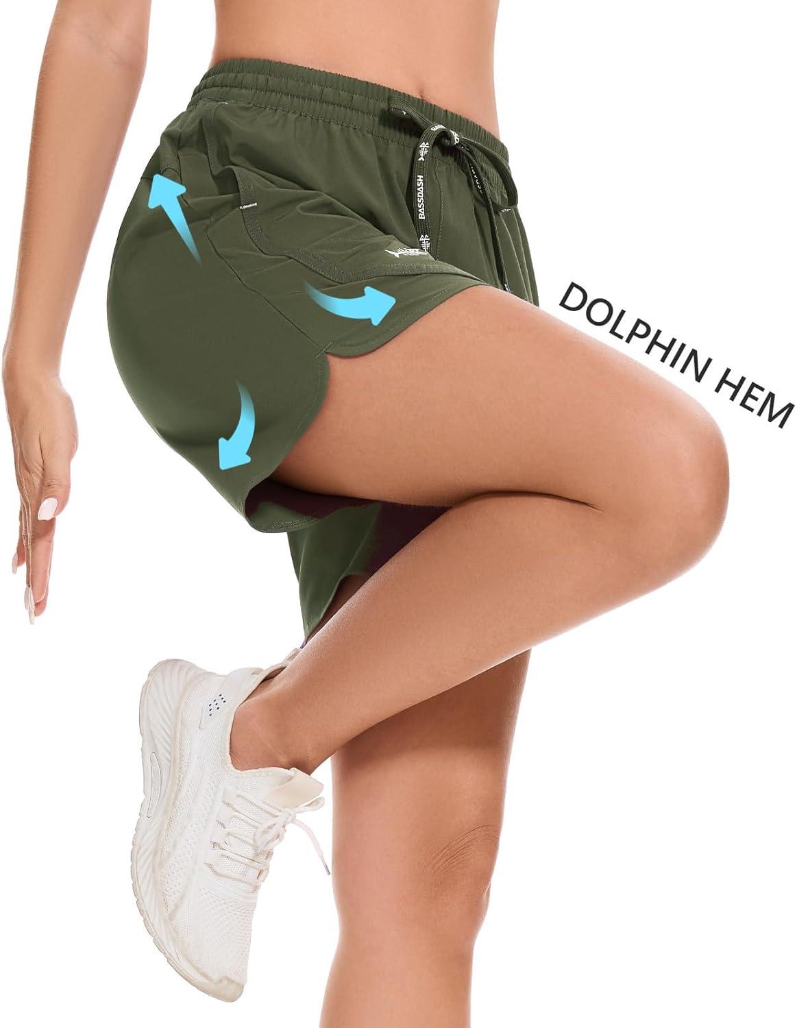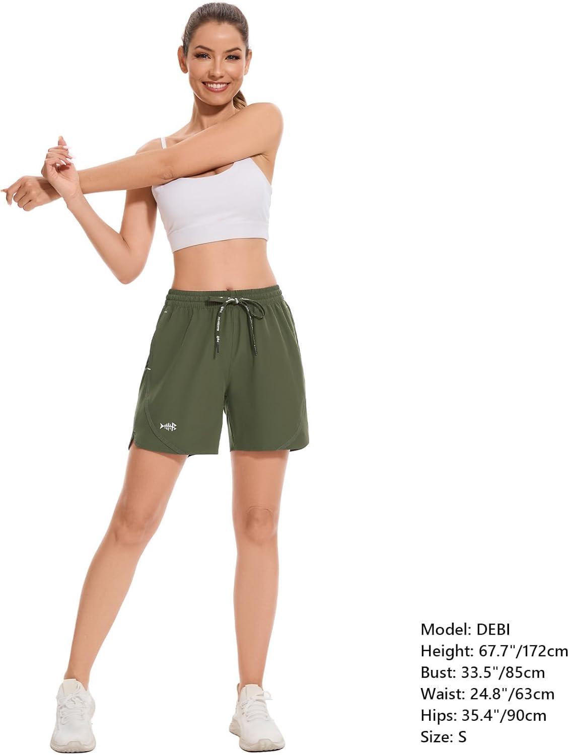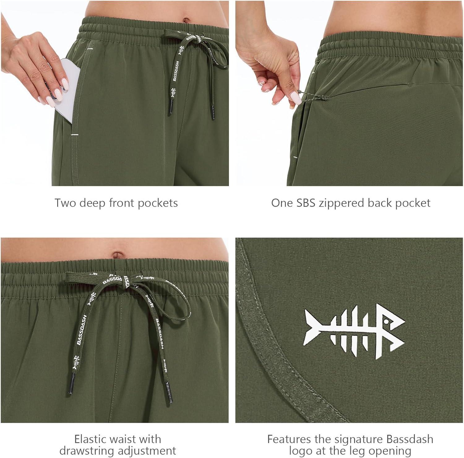 BASSDASH Women’s 5” Fishing Shorts UPF 50+ Water Resistant Quick Dry Athletic Hiking Shorts with Pockets FP05W(Olive Green)