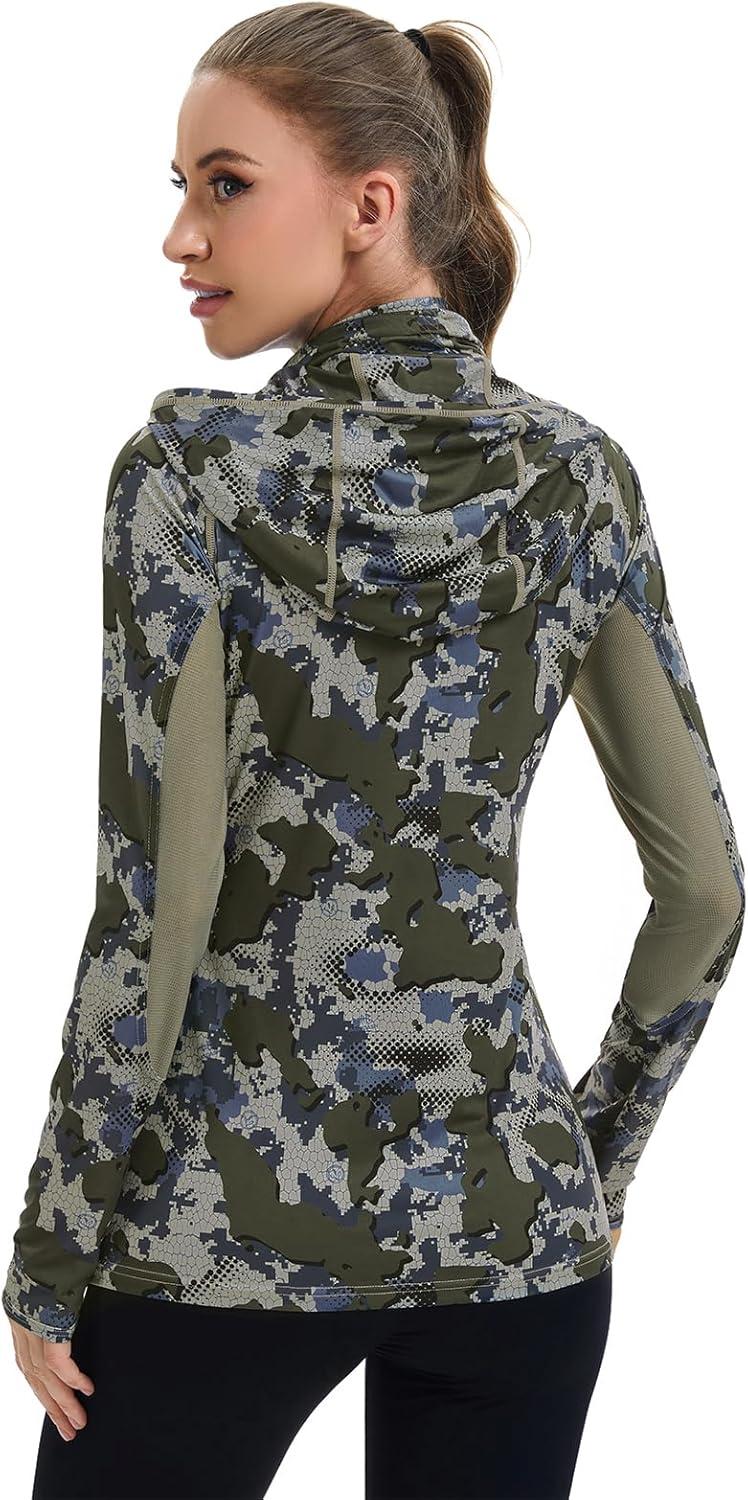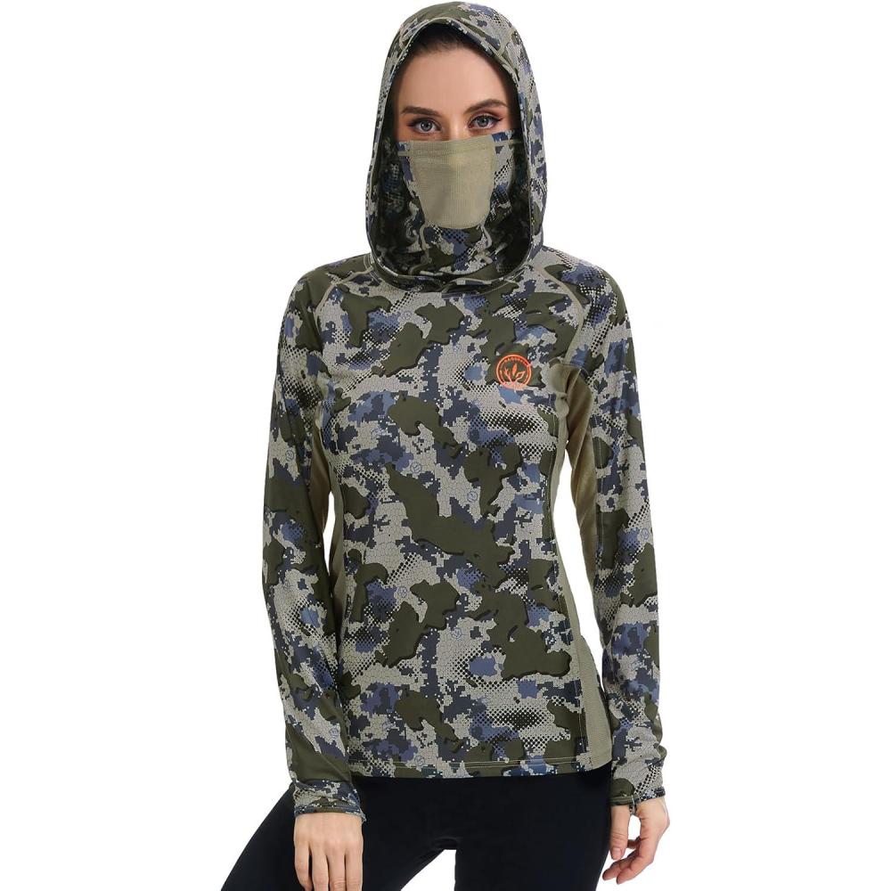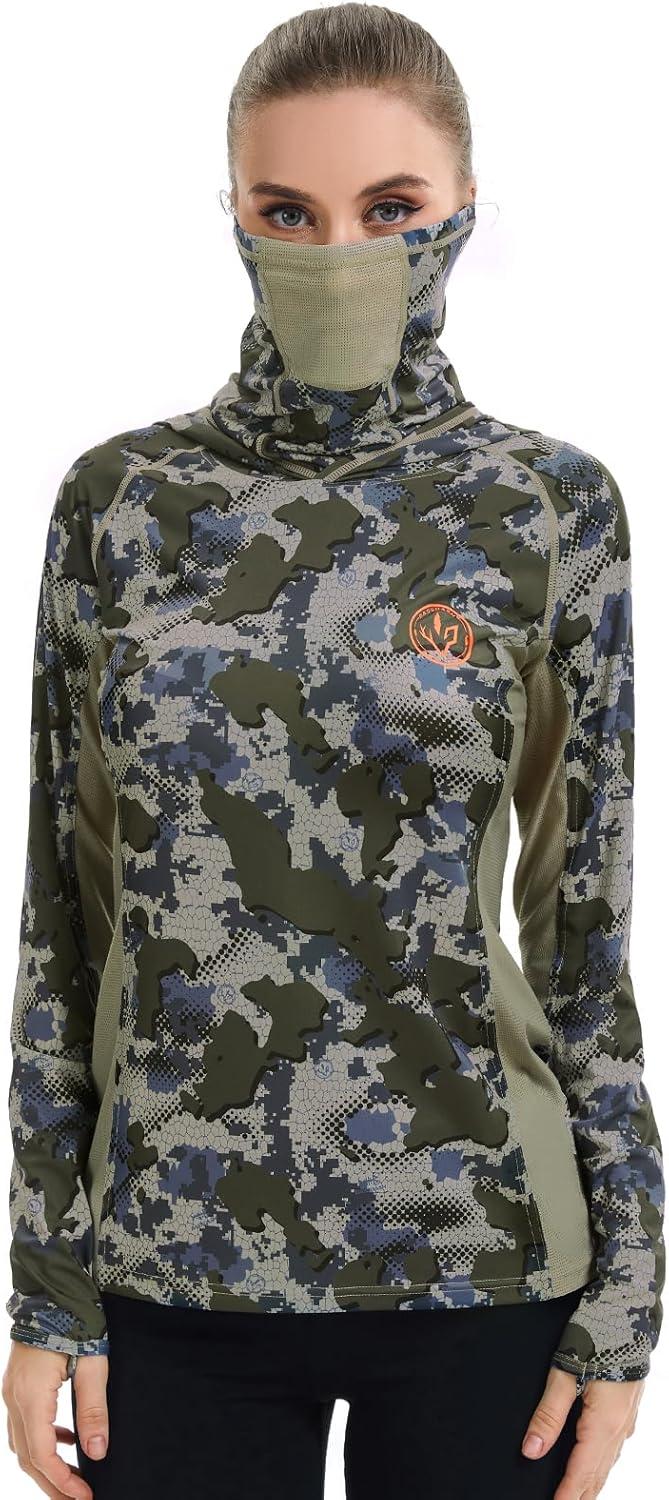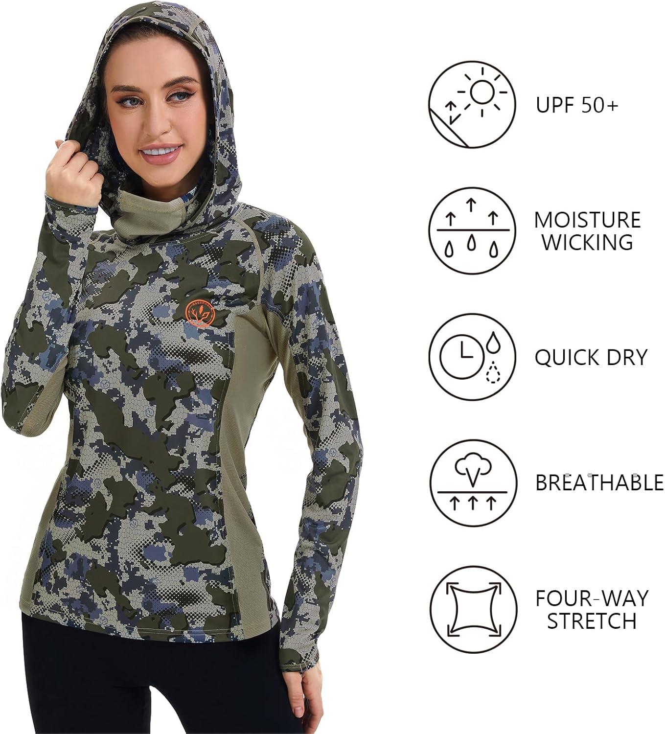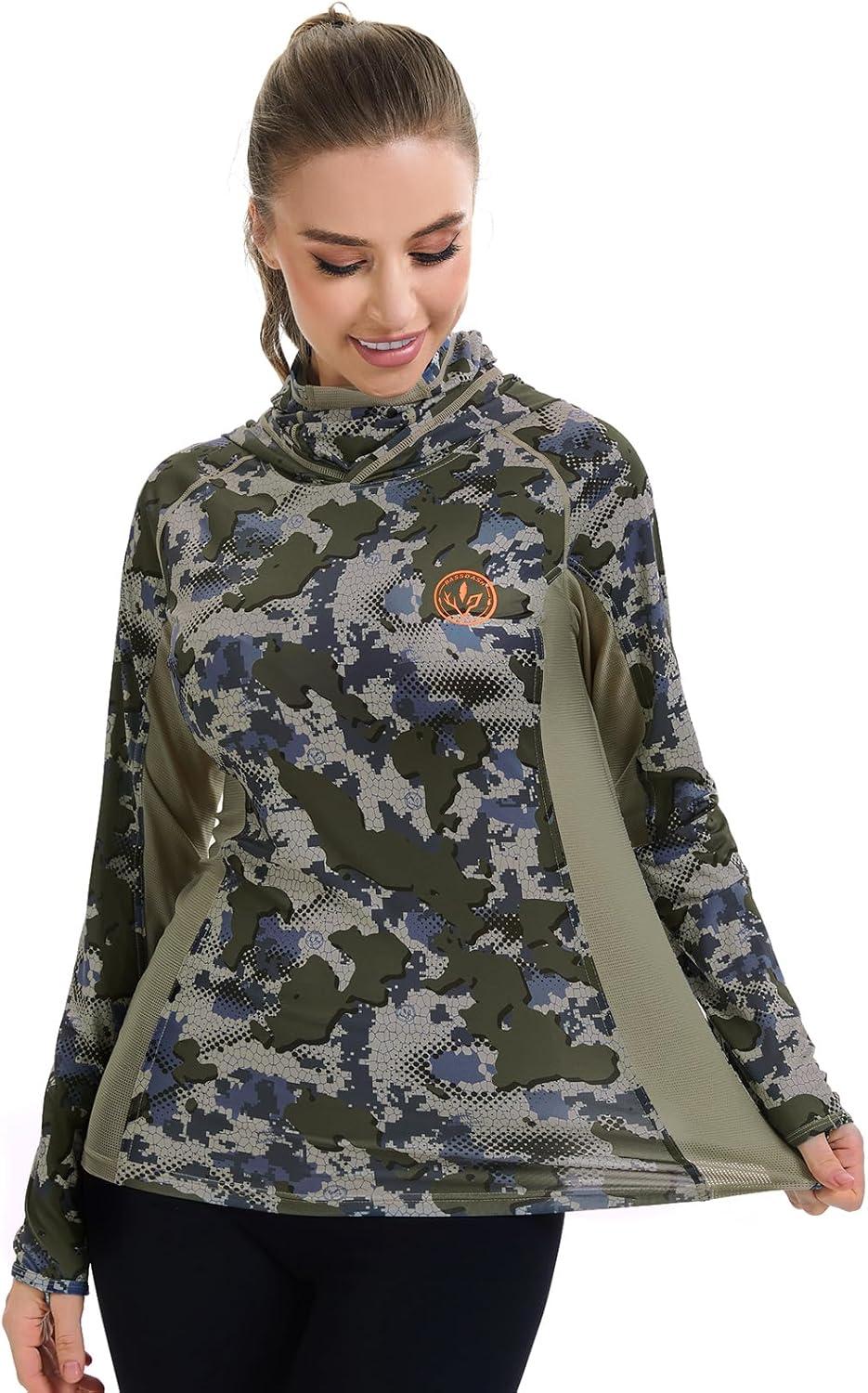 BASSDASH Women’s UPF 50+ Camo Hunting Hoodie with Neck Gaiter Breathable Performance Long Sleeve Fishing Hooded Tee FS03W(Autumn Forest)
