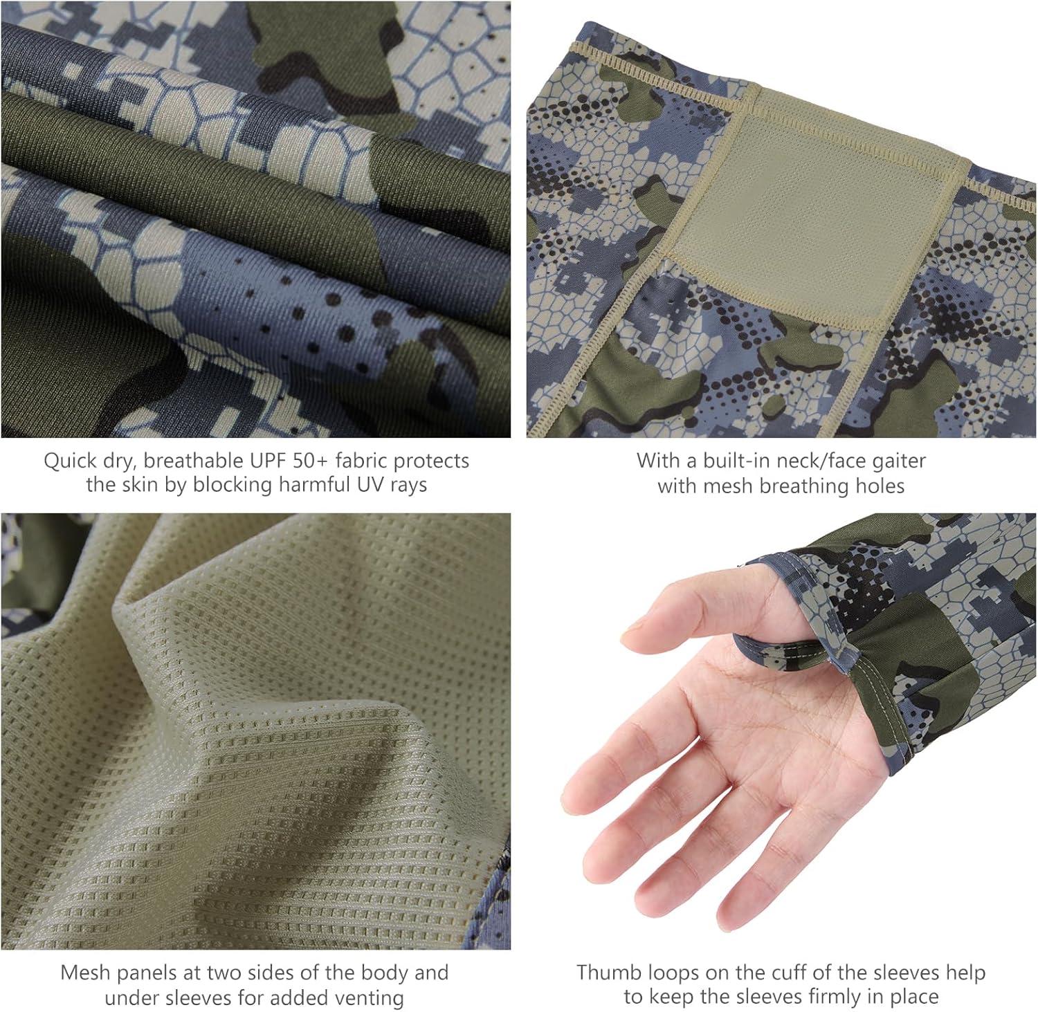BASSDASH Women's UPF 50+ Camo Hunting Hoodie with Neck Gaiter Breathable Performance Long Sleeve Fishing Hooded Tee FS03W(Green Vegetation Camo With Light Fawn Mesh)