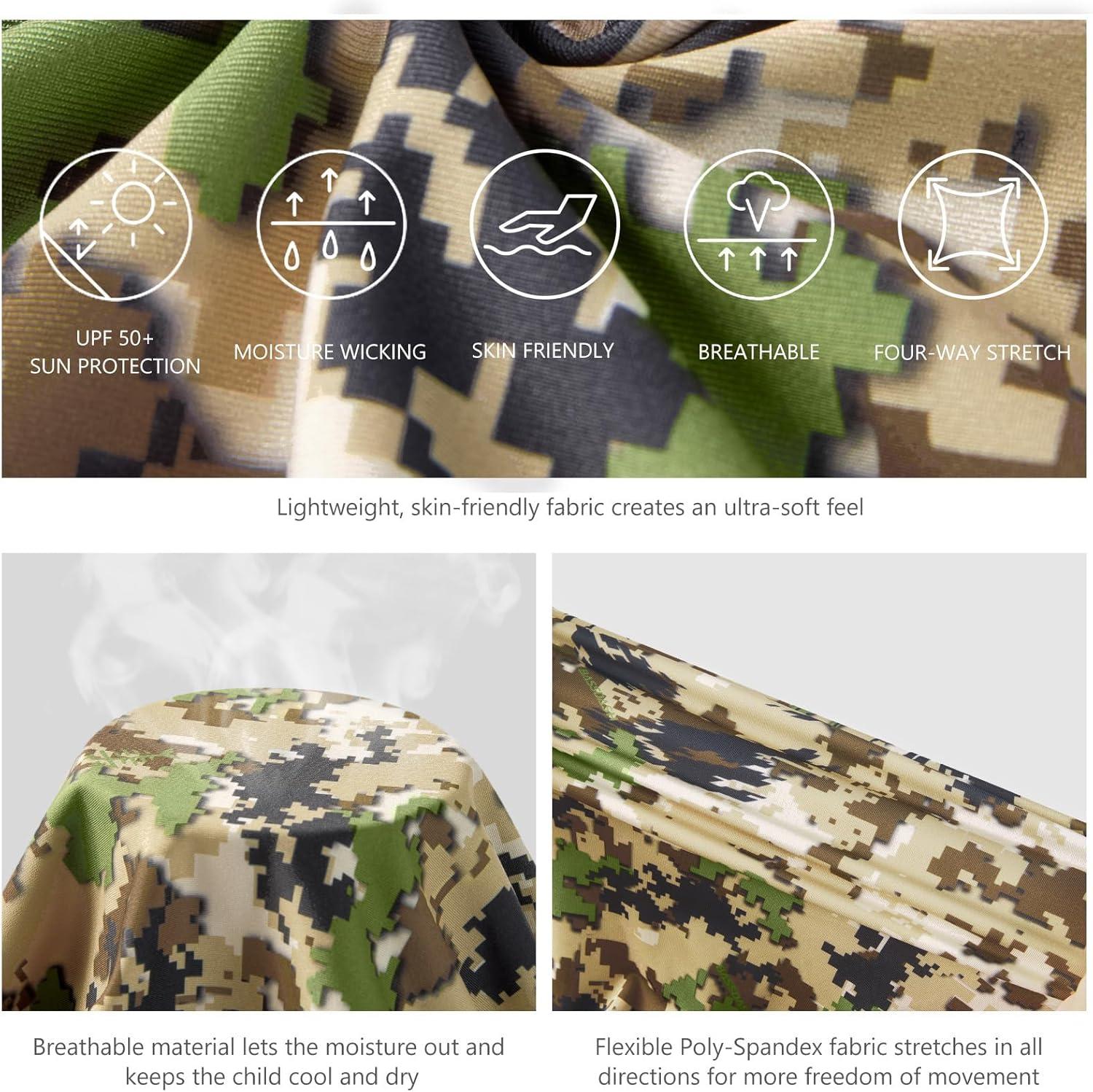 BASSDASH Youth UPF 50+ Camo Hunting Hoodie Shirt with Neck Gaiter Quick Dry Long Sleeve Hooded Tee for Fishing Hiking FS02Y(Grunge Camo)